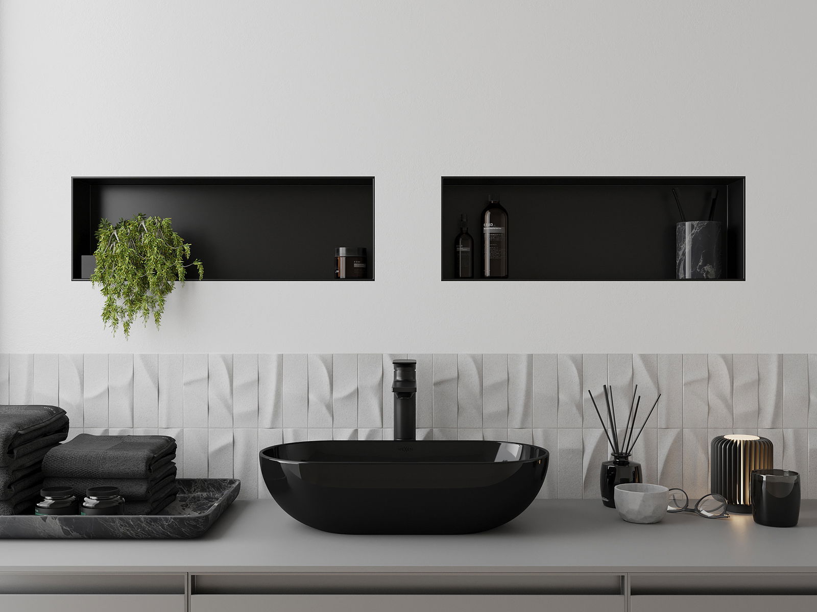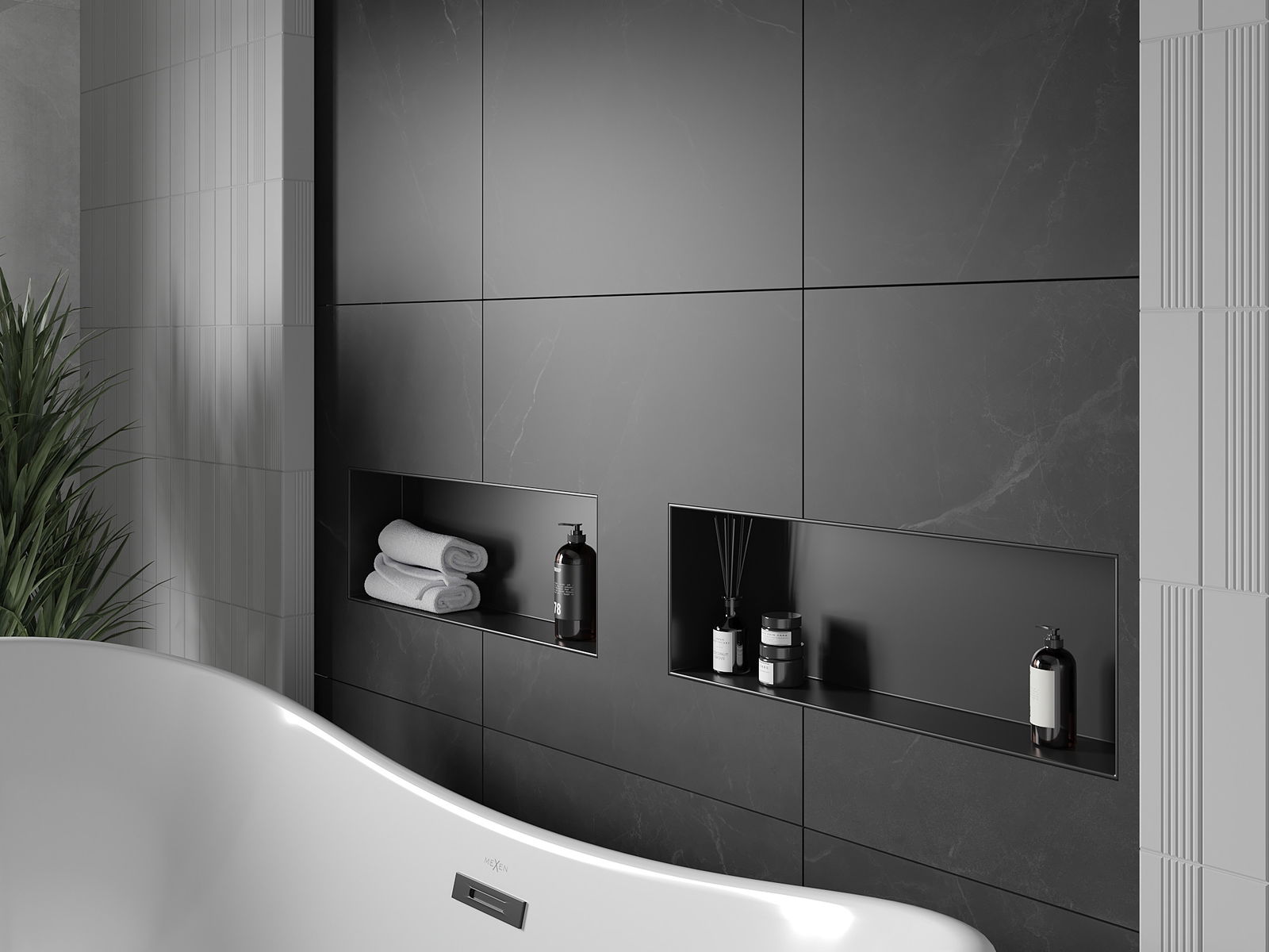 Mexen X-Wall-NR výklenková polička bez obruby 60 x 20 cm, černá - 1971602010