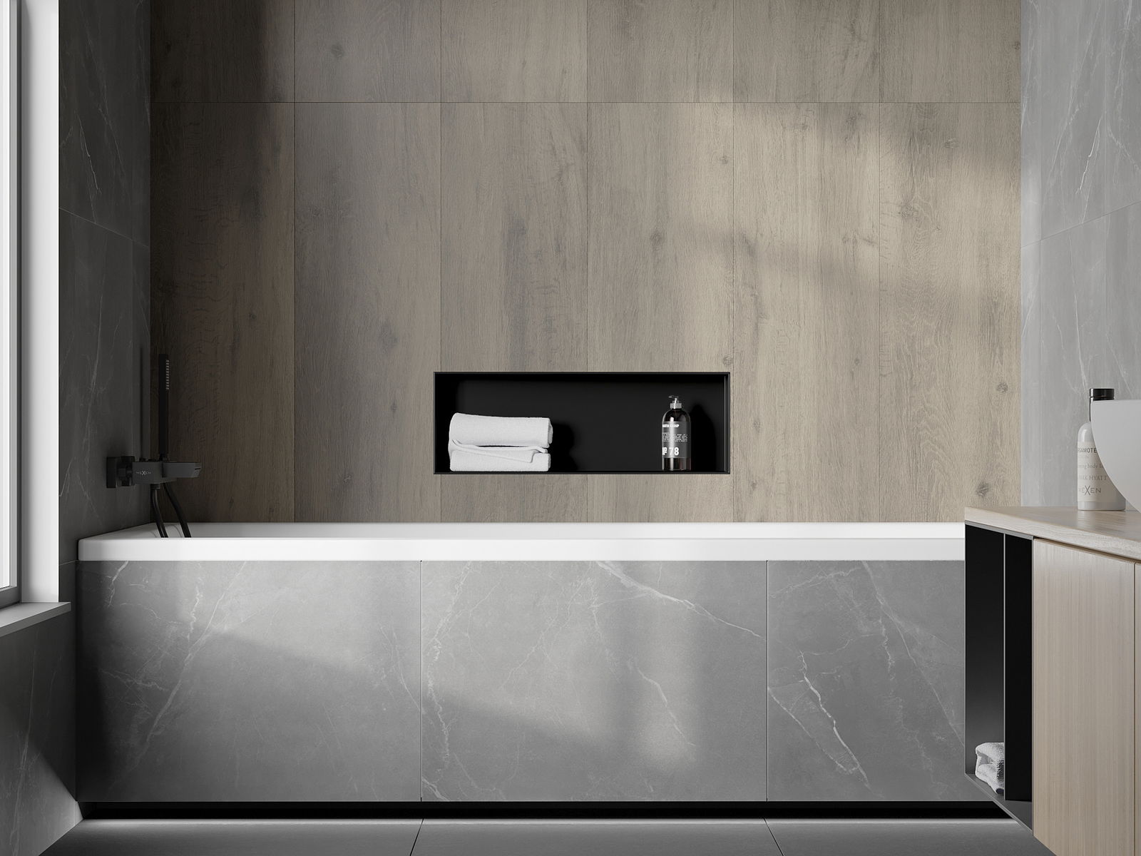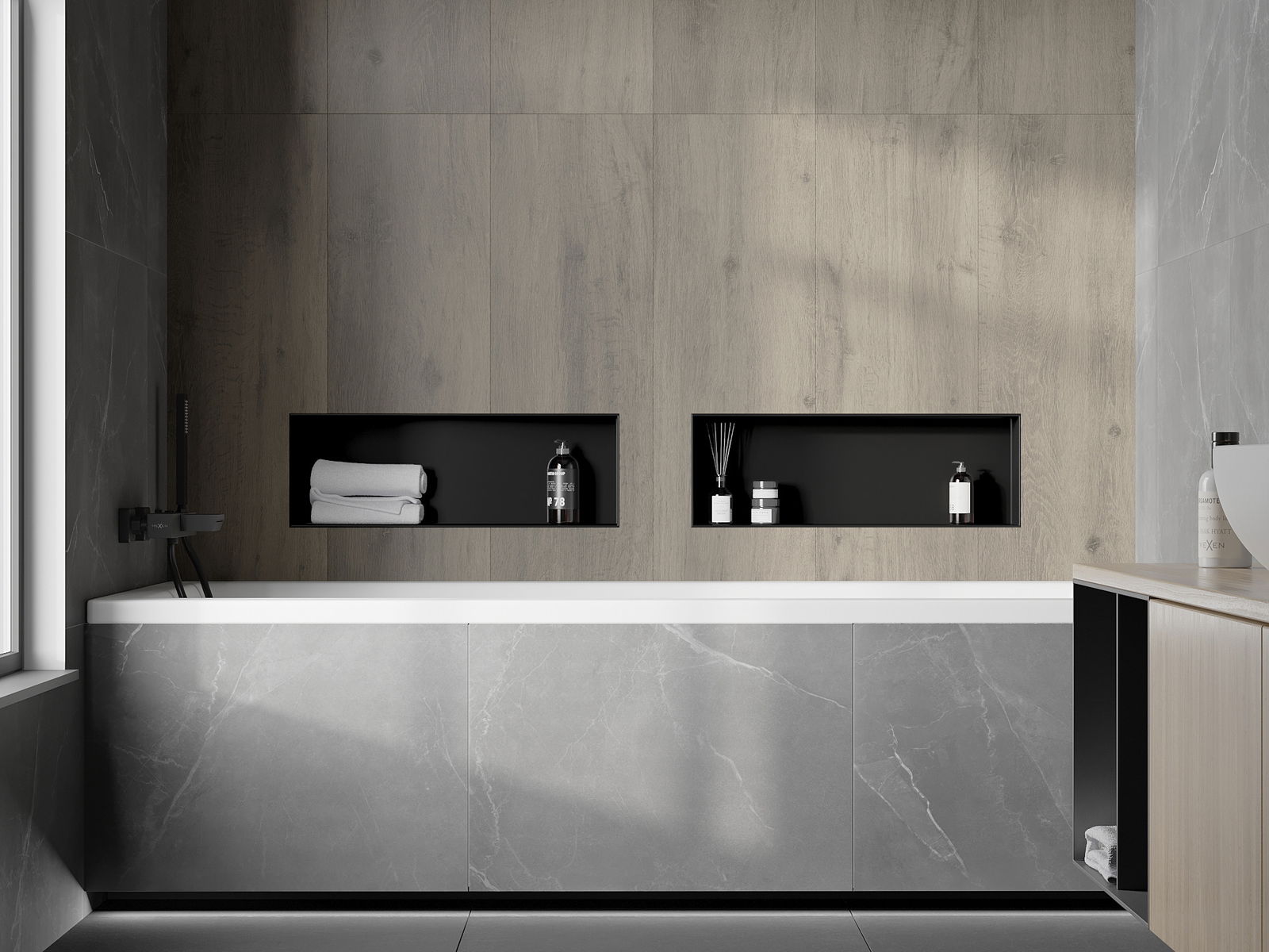 Možnost montáže ve zdi nebo ve speciálně připravené konstrukci. Je to mimořádně moderní a funkční řešení, umožňující ušetřit prostor a přizpůsobit produkt estetice interiéru a vytvořit jednotnou kompozici.