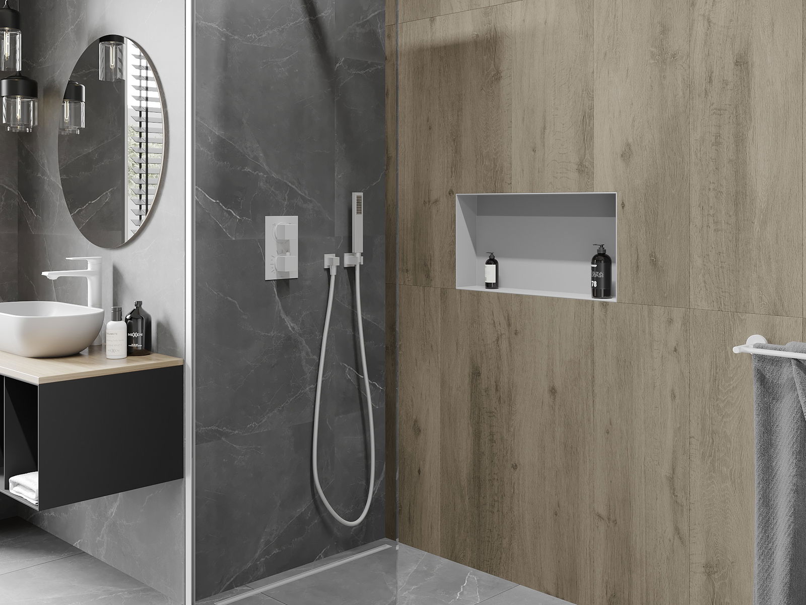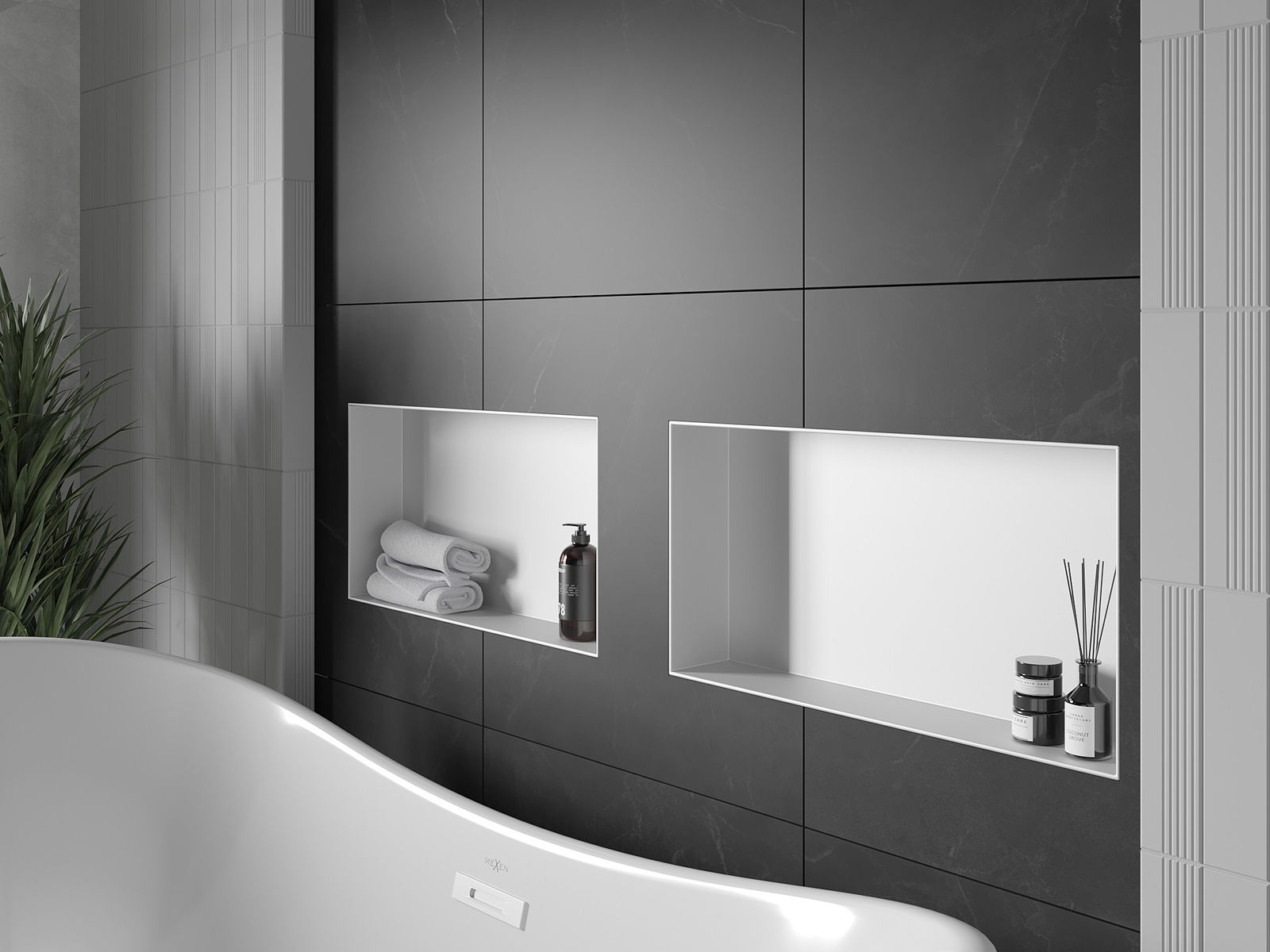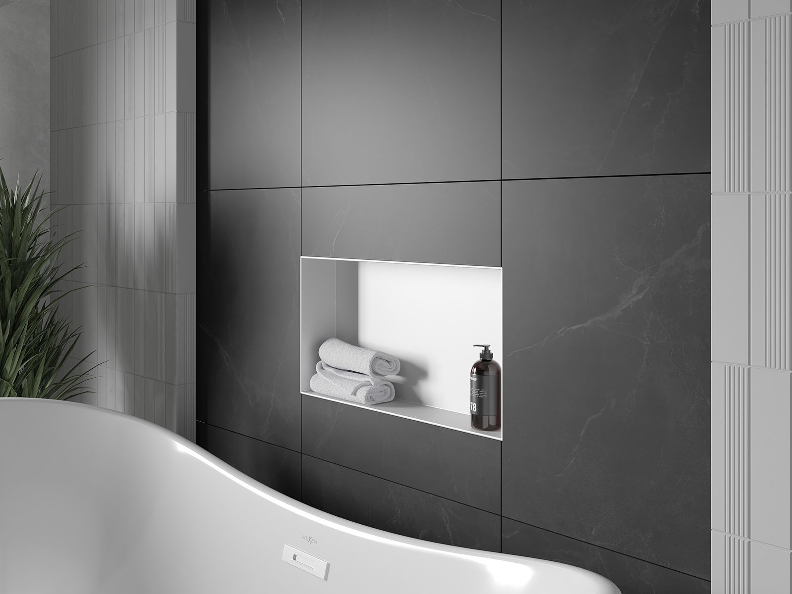 Možnost montáže ve zdi nebo ve speciálně připravené konstrukci. Je to mimořádně moderní a funkční řešení, umožňující ušetřit prostor a přizpůsobit produkt estetice interiéru a vytvořit jednotnou kompozici.
