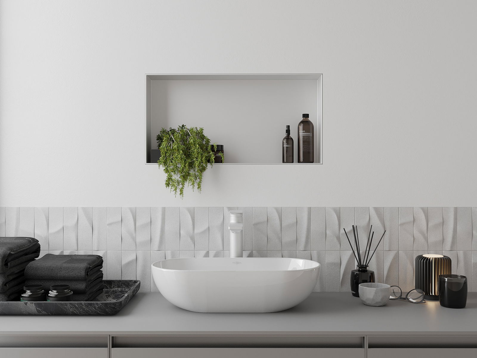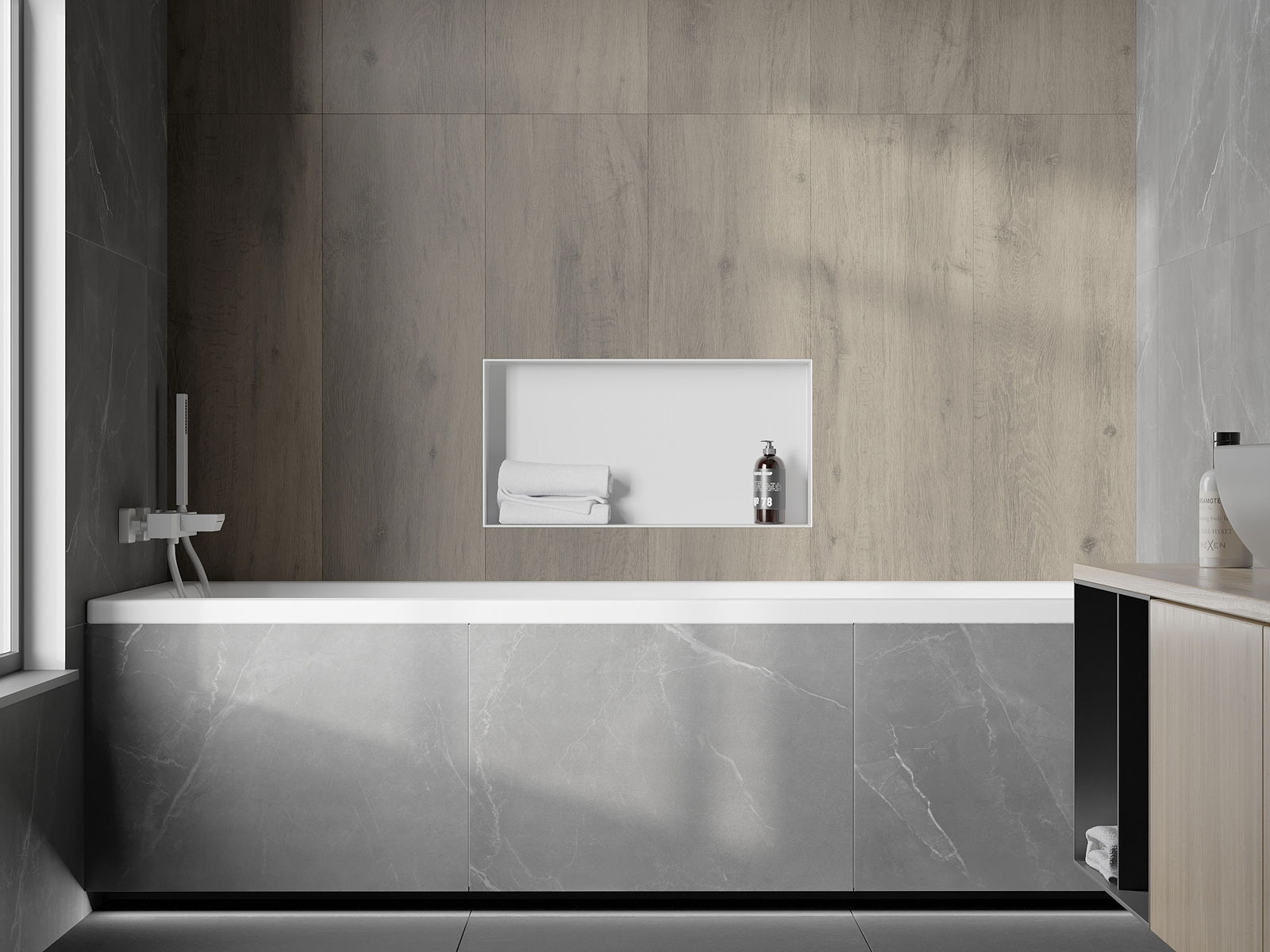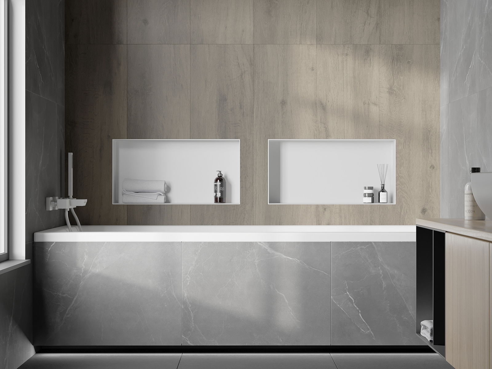 Možnost montáže ve zdi nebo ve speciálně připravené konstrukci. Je to mimořádně moderní a funkční řešení, umožňující ušetřit prostor a přizpůsobit produkt estetice interiéru a vytvořit jednotnou kompozici.