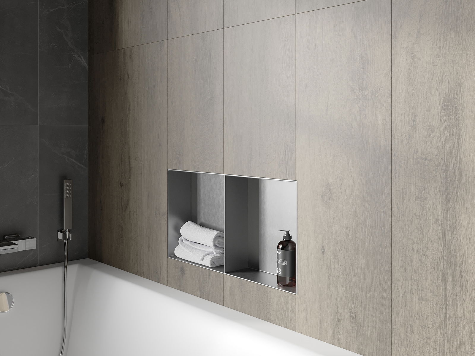 Možnost montáže ve zdi nebo ve speciálně připravené konstrukci. Je to mimořádně moderní a funkční řešení, umožňující ušetřit prostor a přizpůsobit produkt estetice interiéru a vytvořit jednotnou kompozici.