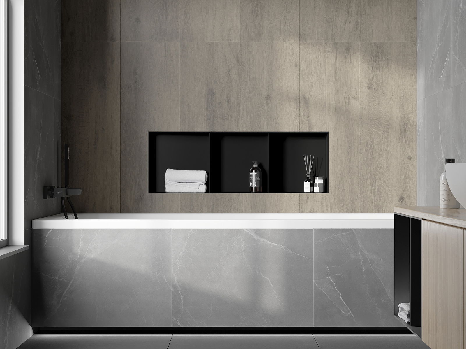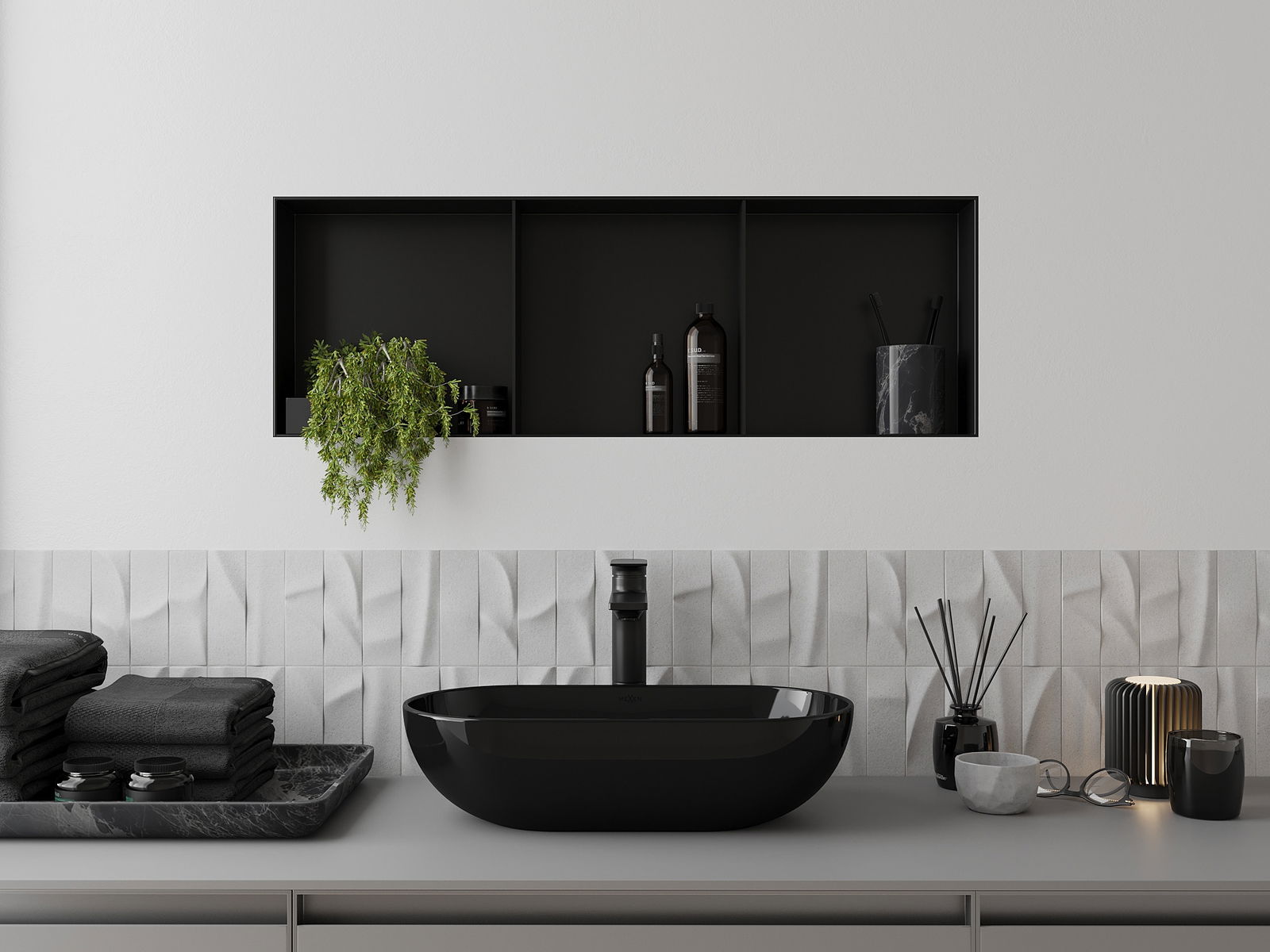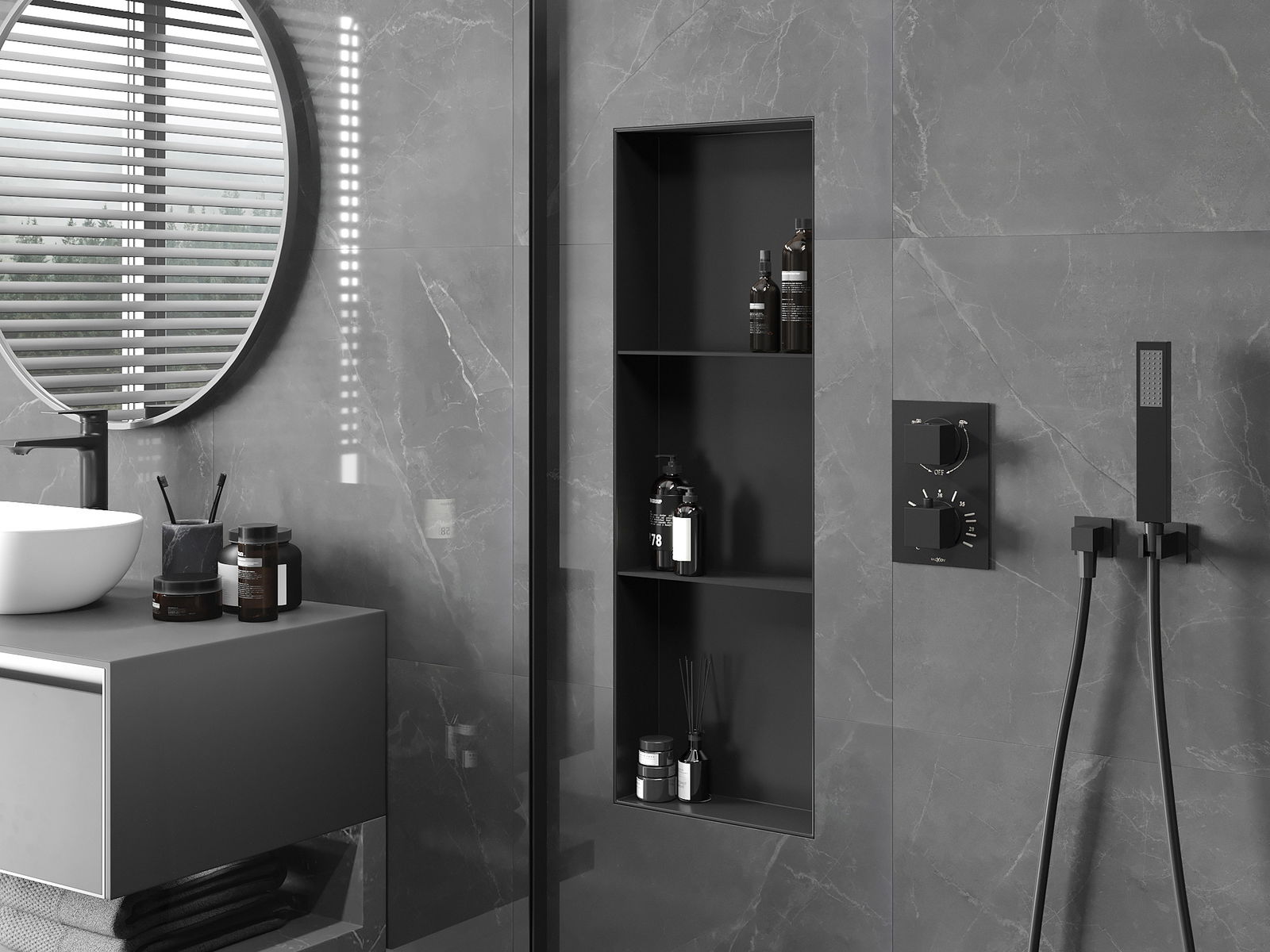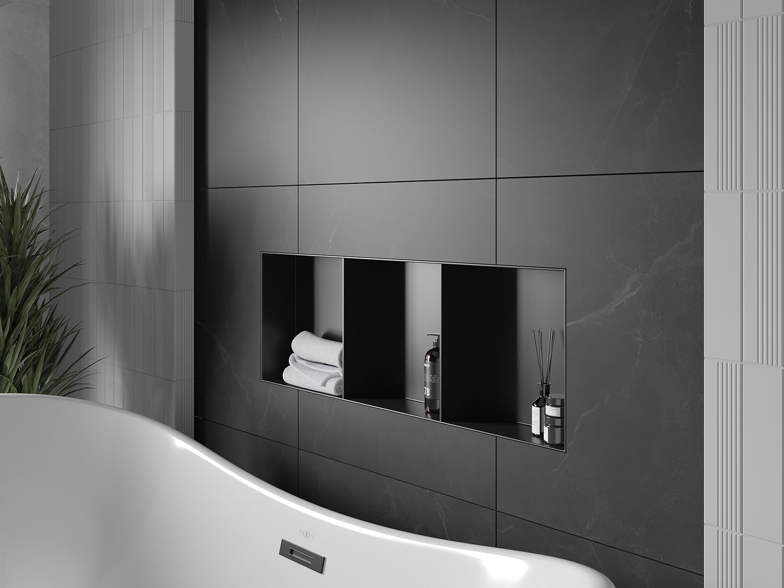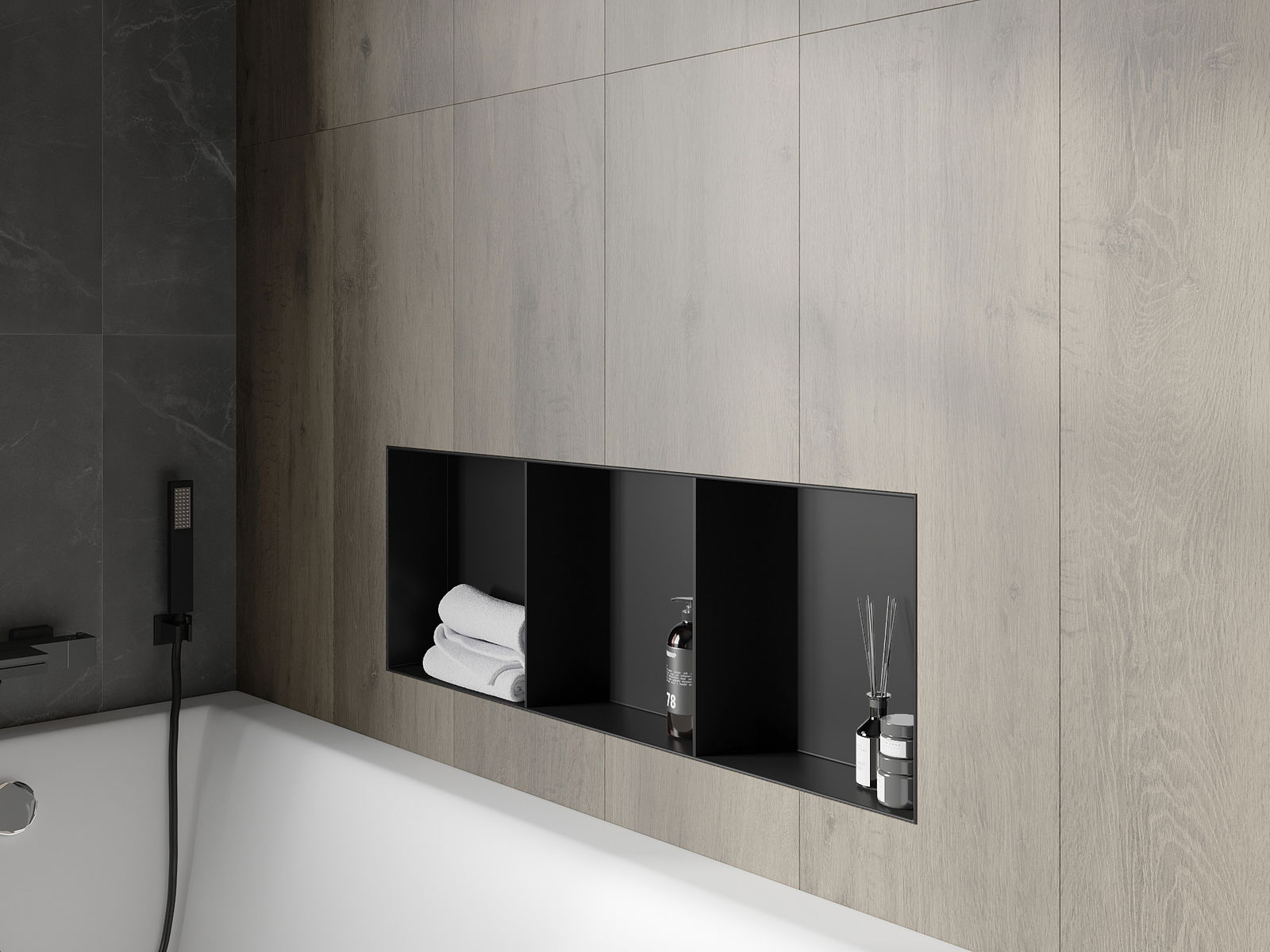 Možnost montáže ve zdi nebo ve speciálně připravené konstrukci. Je to mimořádně moderní a funkční řešení, umožňující ušetřit prostor a přizpůsobit produkt estetice interiéru a vytvořit jednotnou kompozici.