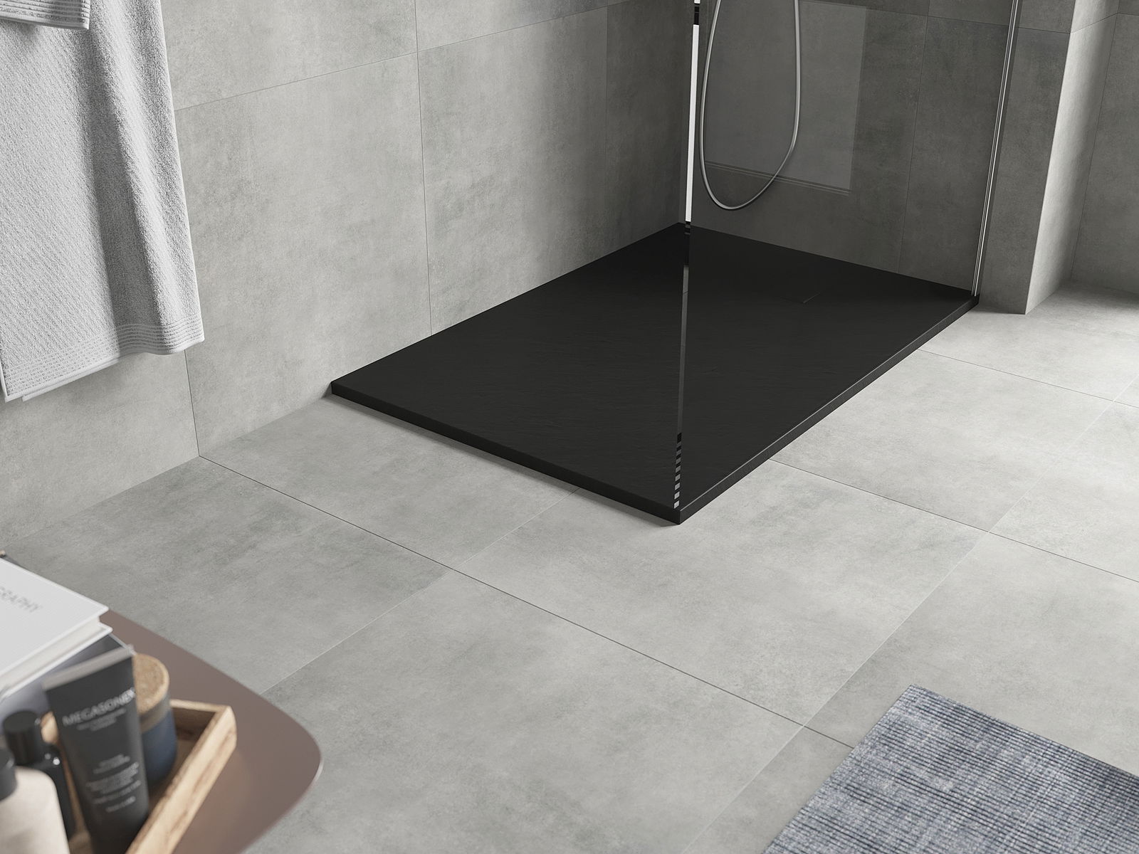 Povrch sprchové vaničky svou strukturou připomíná kámen. Představuje jedinečné spojení přírodního vzhledu s moderním uspořádáním interiéru. Dodává charakter, podtrhuje estetiku a eleganci designu koupelny a okouzluje svou formou.