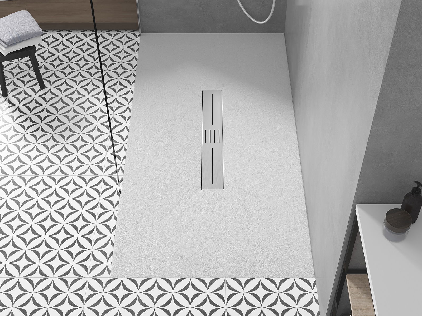 Povrch sprchové vaničky svou strukturou připomíná kámen. Představuje jedinečné spojení přírodního vzhledu s moderním uspořádáním interiéru. Dodává charakter, podtrhuje estetiku a eleganci designu koupelny a okouzluje svou formou.
