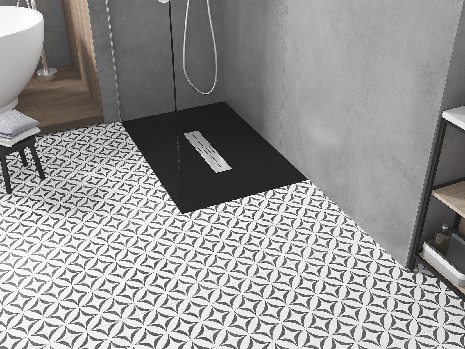 Povrch sprchové vaničky svou strukturou připomíná kámen. Představuje jedinečné spojení přírodního vzhledu s moderním uspořádáním interiéru. Dodává charakter, podtrhuje estetiku a eleganci designu koupelny a okouzluje svou formou.