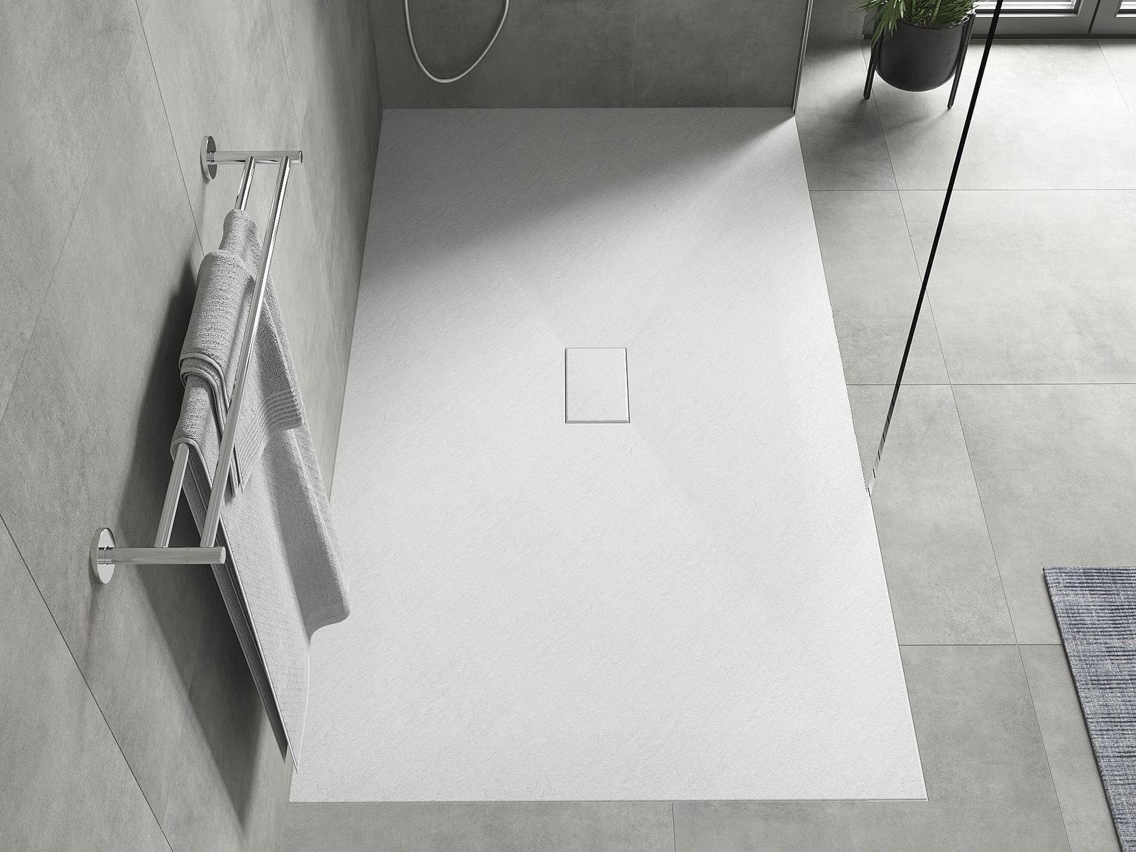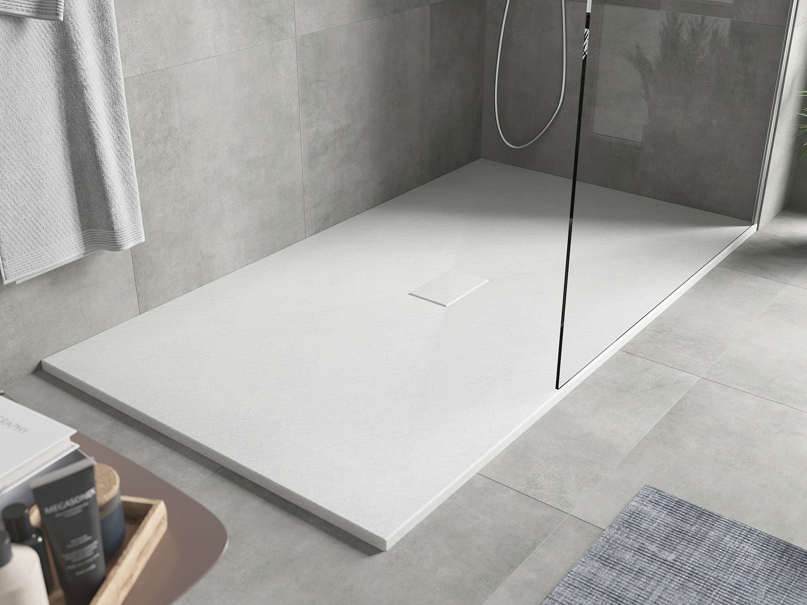 Povrch sprchové vaničky svou strukturou připomíná kámen. Představuje jedinečné spojení přírodního vzhledu s moderním uspořádáním interiéru. Dodává charakter, podtrhuje estetiku a eleganci designu koupelny a okouzluje svou formou.
