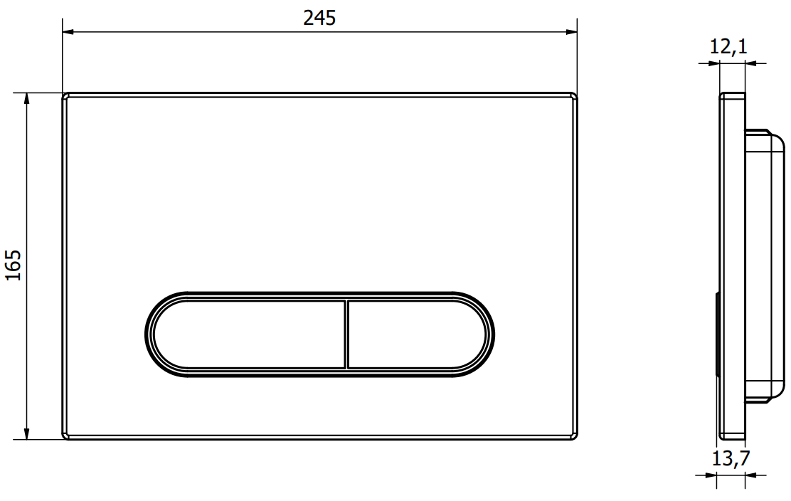 Tlačítko je určeno pro nástěnné rámy, kde je místo montáže umístěno na přední straně konstrukce. Díky tomuto umístění poskytuje snadný přístup a pohodlné ovládání splachování.