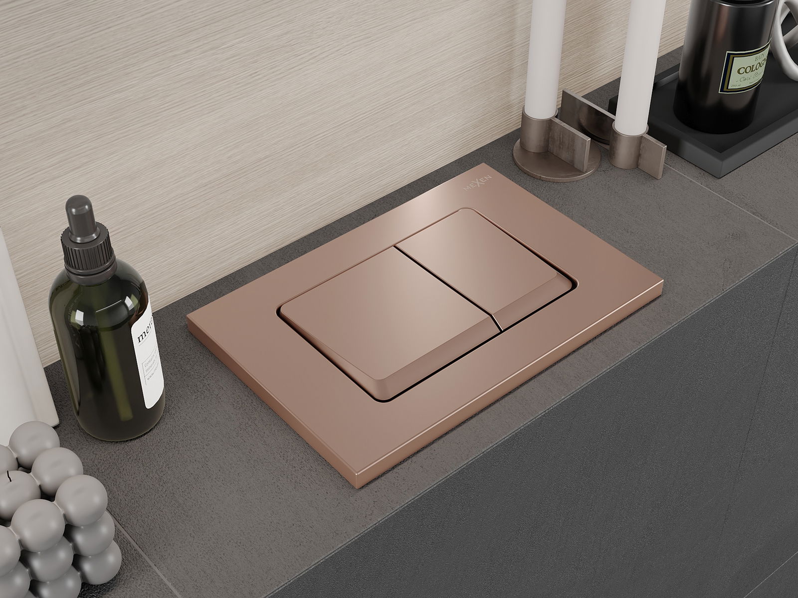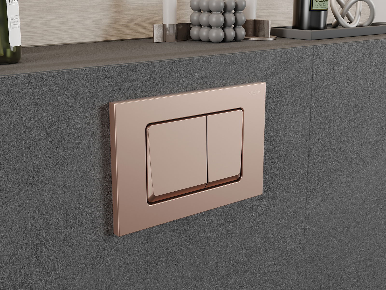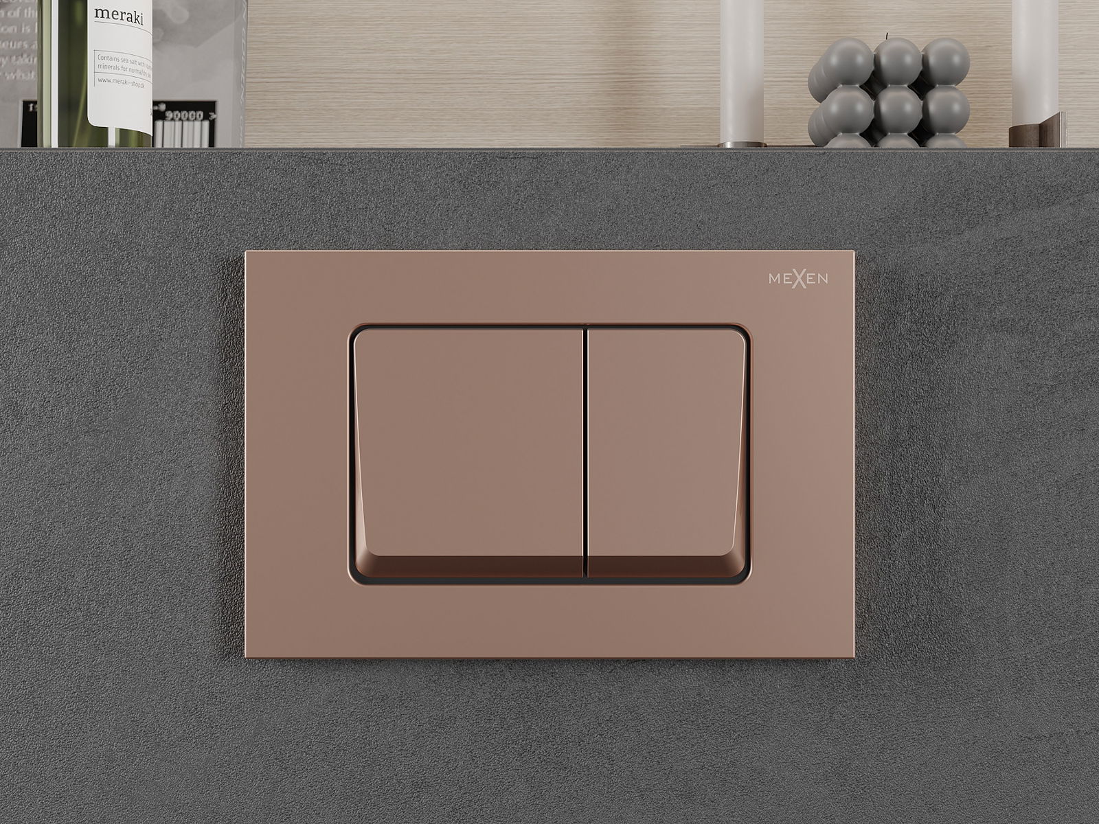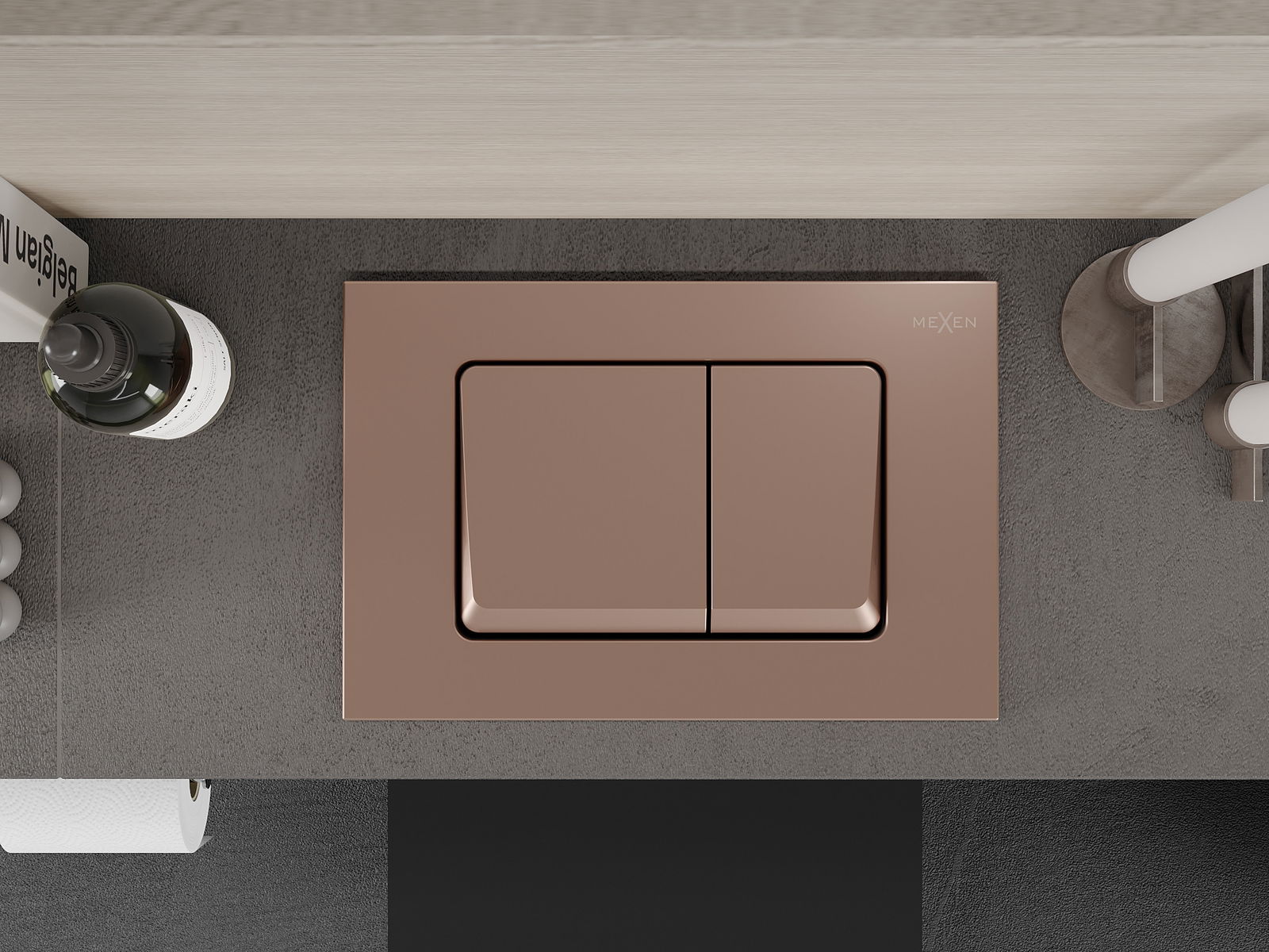 Tlačítko je určeno pro rámy Mexen ze série XS. Může být montováno jak zepředu, tak i shora rámu, což zvyšuje jeho univerzálnost. Takové řešení usnadňuje instalaci v různých montážních podmínkách. Díky tomu je obsluha splachování pohodlná a intuitivní.