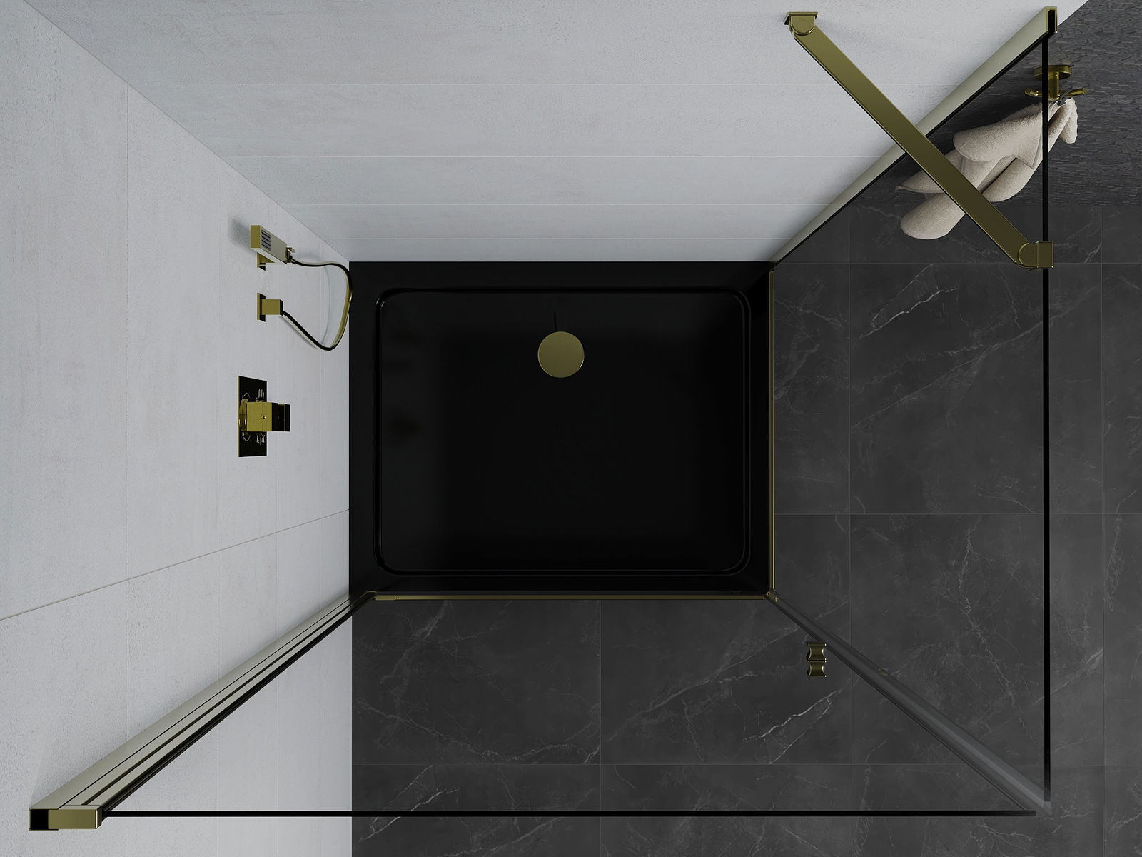 Mexen Pretoria sprchový kout otočný 100 x 90 cm, transparentní, zlatý + sprchová vanička Flat, černá - 852-100-090-50-00-4070G