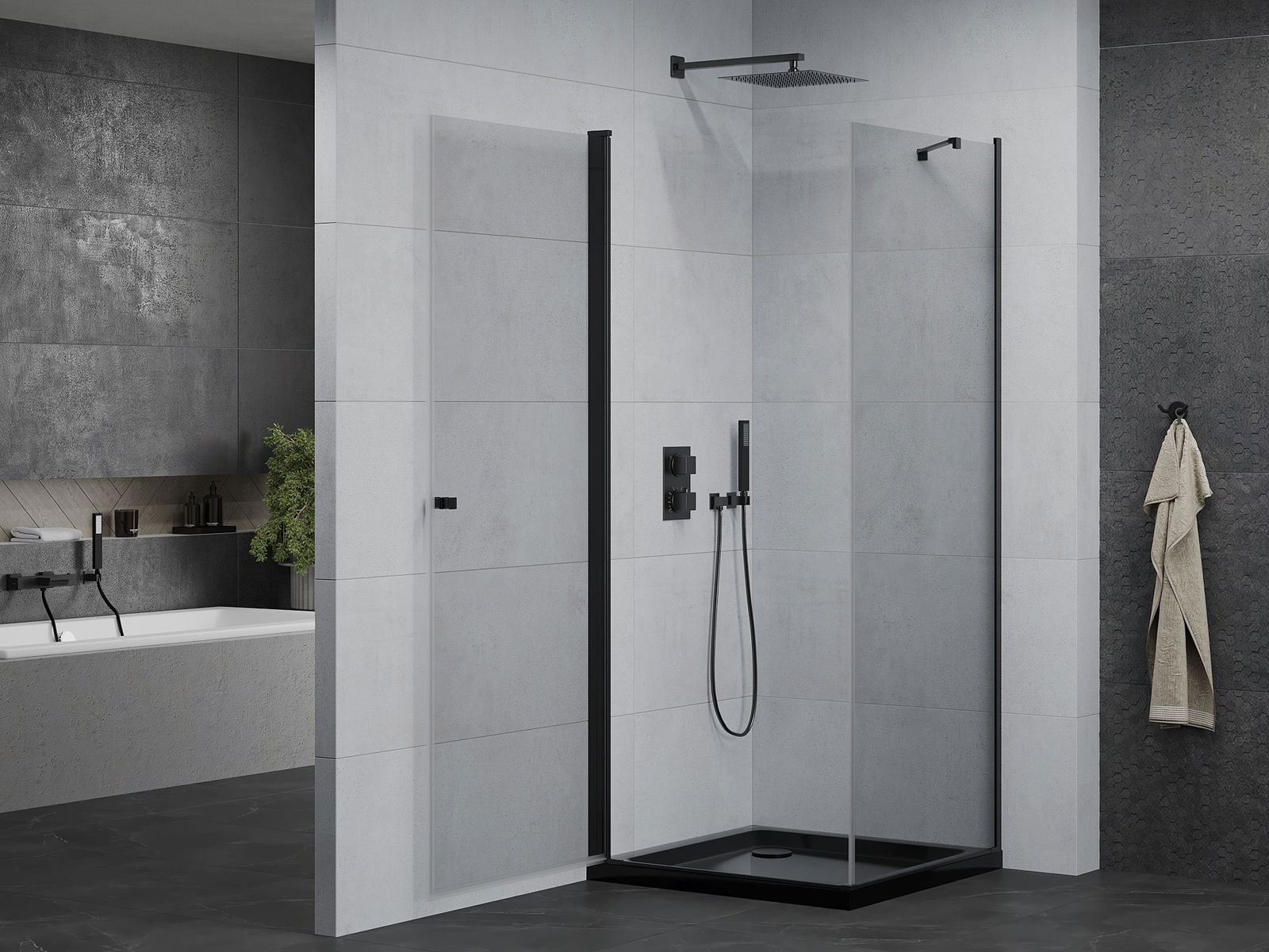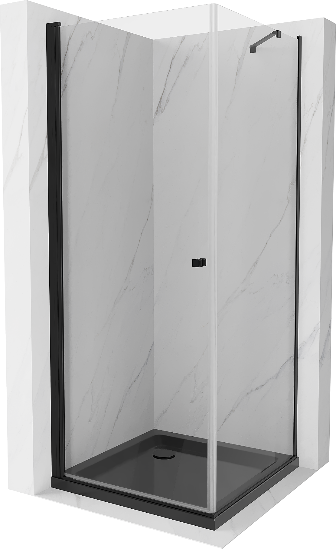Mexen Pretoria sprchový kout s otočnými dveřmi 90 x 90 cm, transparentní, černá + vanička Flat, černá - 852-090-090-70-00-4070B