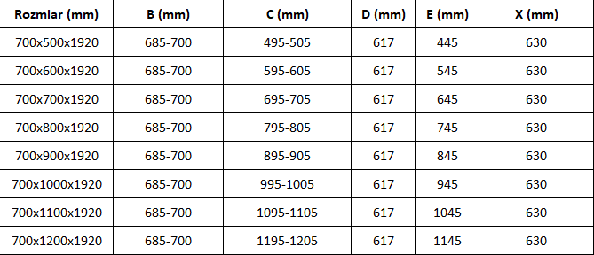 Velikost: 70x80 cm (dveře 70 cm, stěna 80 cm)