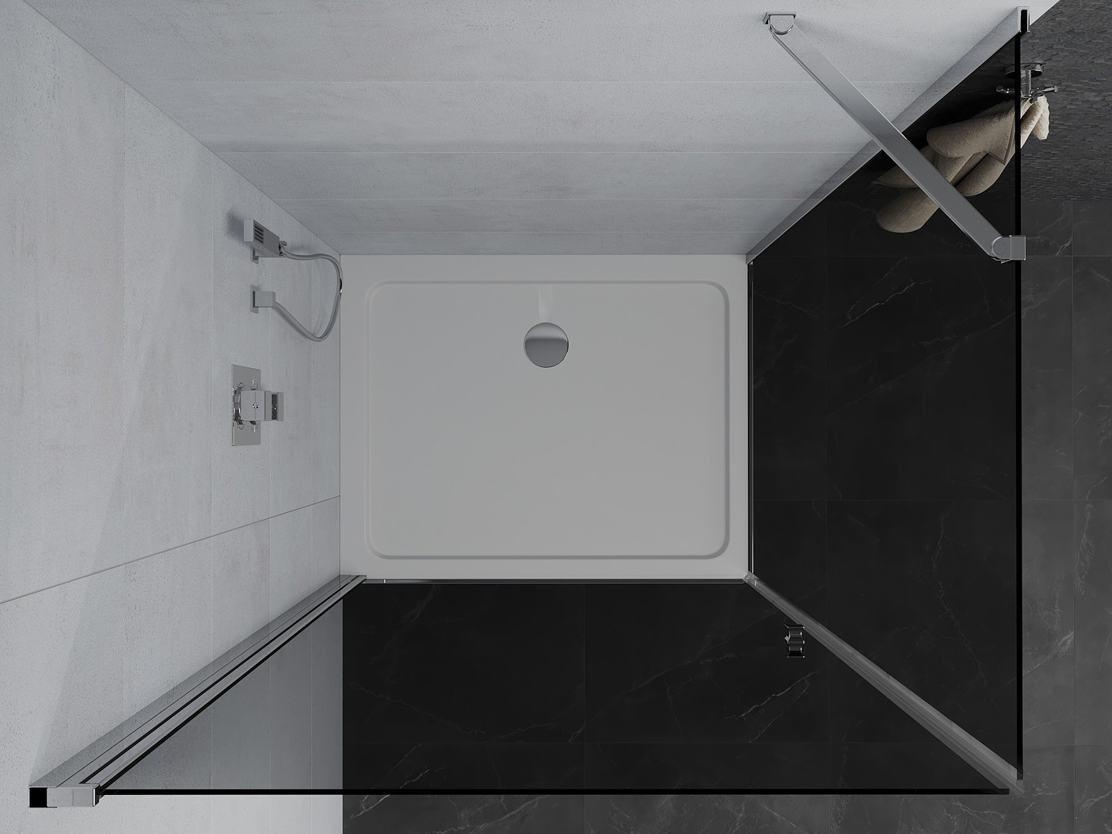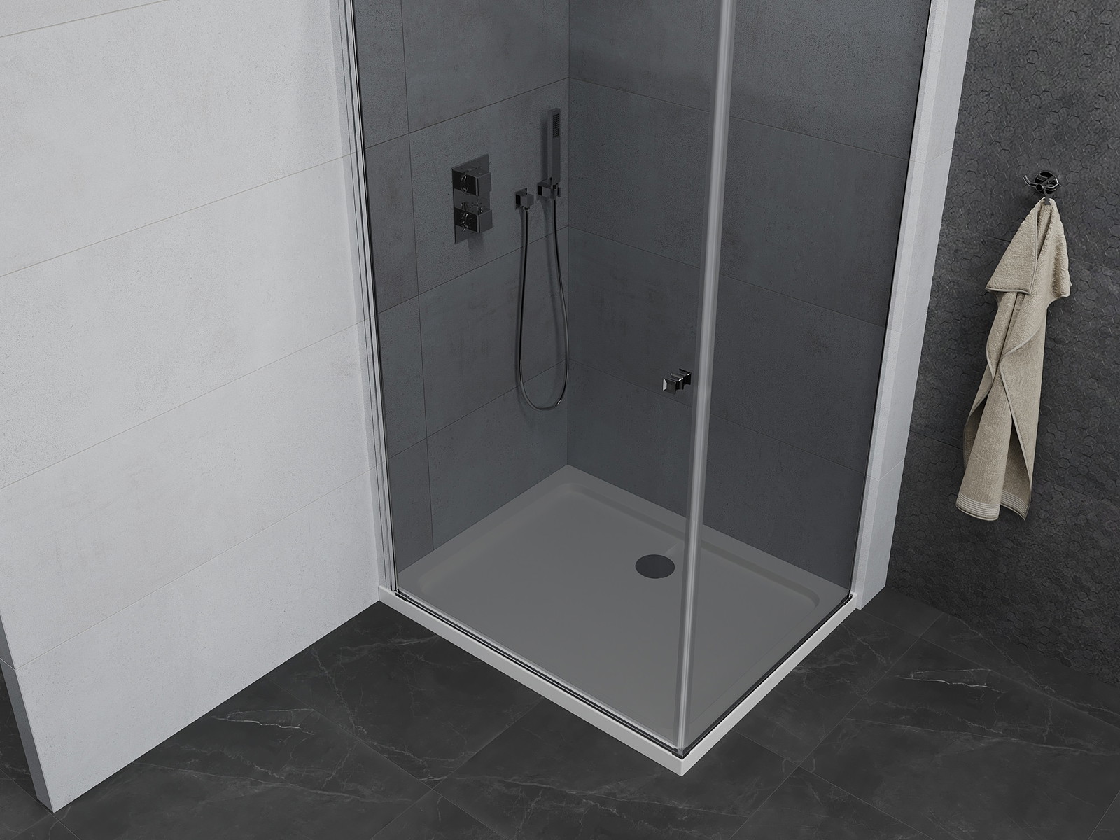 Praktická a pohodlná rukojeť je vyrobena z odolného a trvanlivého kovu. Moderní tvar ve spojení s povrchovou úpravou, která ladí s barvou profilů, dodává celku moderní a stylový vzhled, zdůrazňující estetiku každé koupelny.
