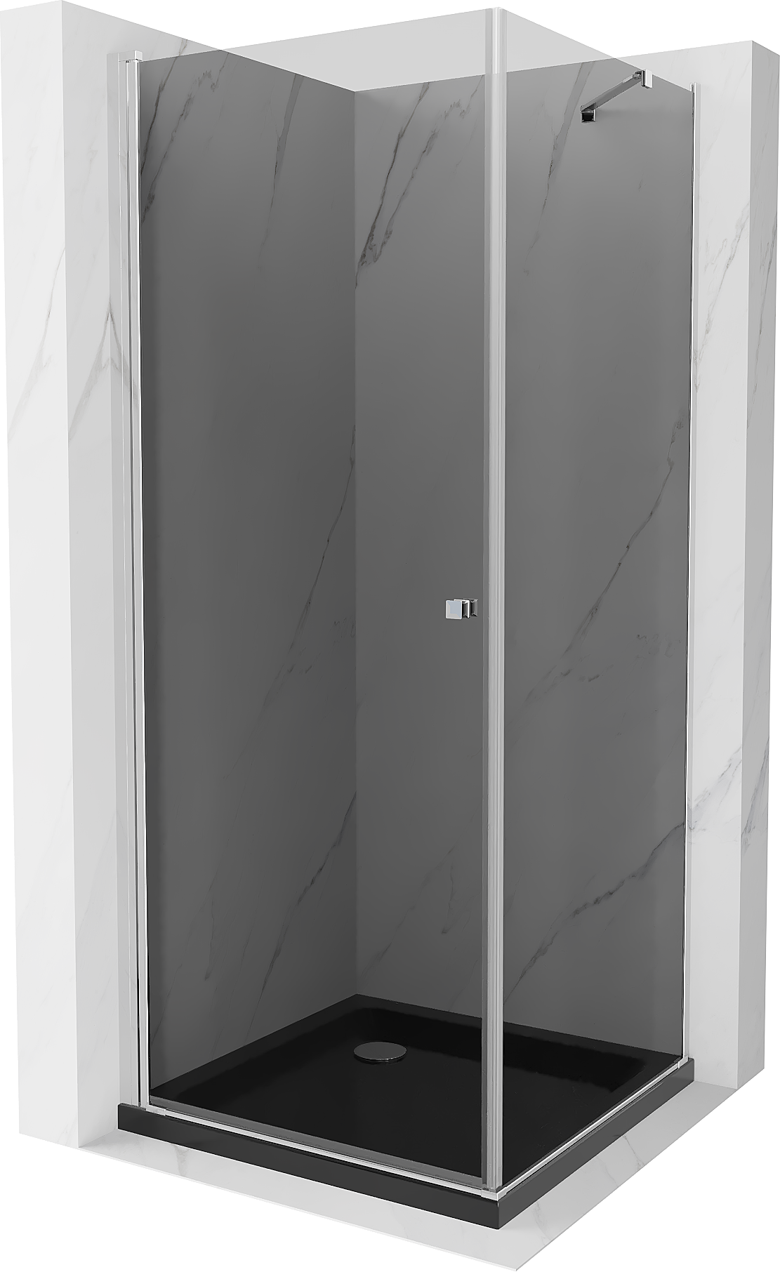 Mexen Pretoria sprchový kout otočný 70 x 70 cm, grafit , chrom + sprchová vanička Flat, černý - 852-070-070-01-40-4070