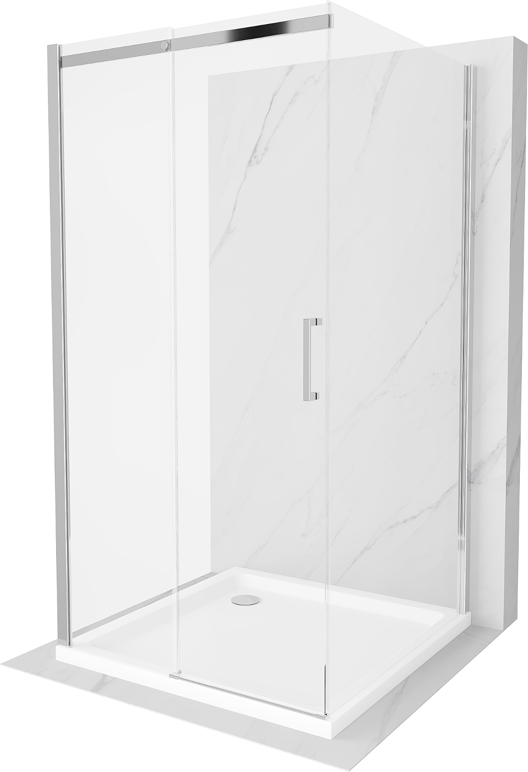 Mexen Omega-3S sprchový kout 3-stěnný, posuvný 100x100 cm, transparentní, chrom + tác Flat - 825-100-100-01-00-3s-4010