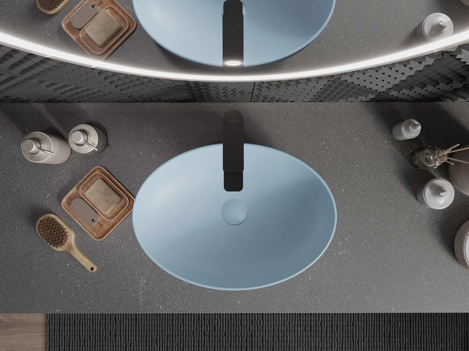 Mexen Cornelia je elegantní umyvadlo na desku o rozměrech 50 x 37 cm, které se vyznačuje unikátním modrým matným povrchem. Vyrobeno z vysoce kvalitní sanitární keramiky, nejenže zajišťuje stylový vzhled, ale také trvanlivost a snadnou údržbu. Oválný tvar a absence otvorů pro baterii a přepad zdůrazňují moderní design. Ideální do koupelen, spojuje funkčnost s estetikou a vytváří nezapomenutelný prostor pro uživatele.