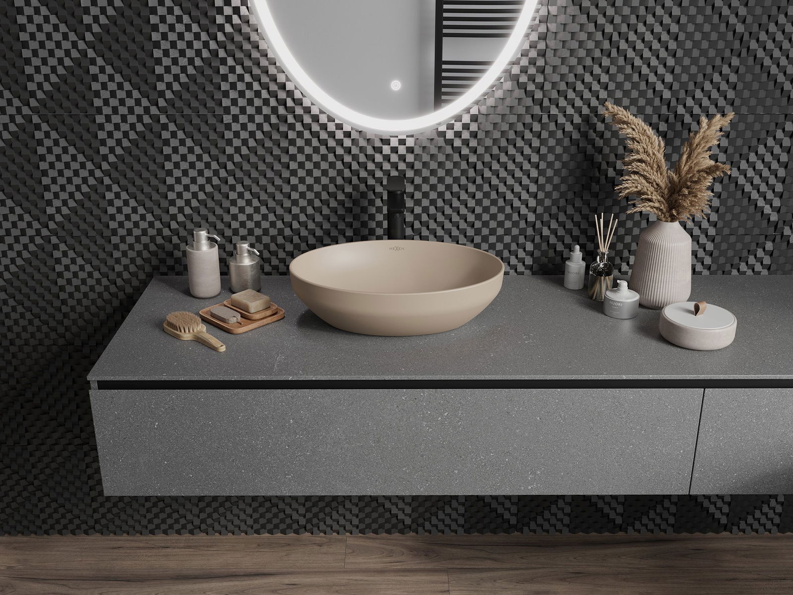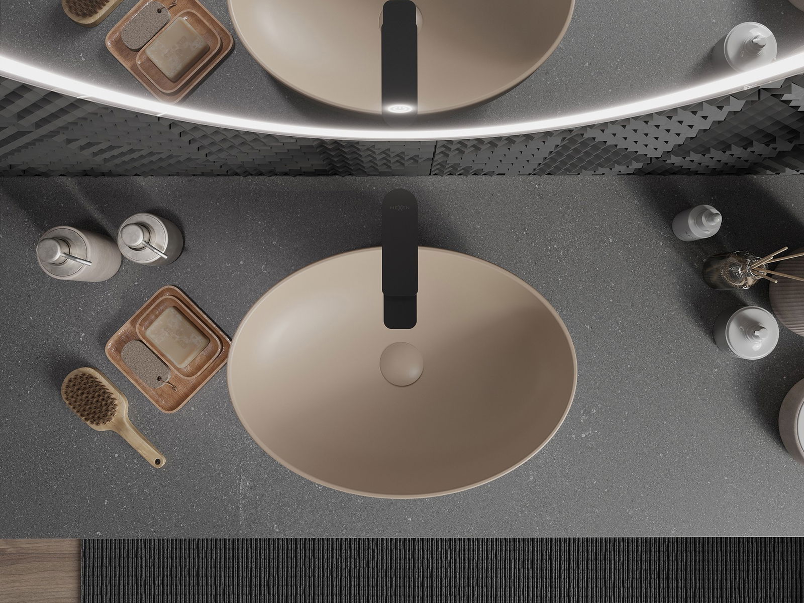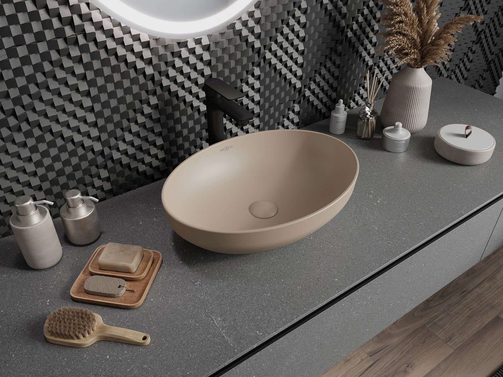 Matný povrch keramiky dokonale podtrhuje charakter barvy produktu, dodává mu jedinečnou a výraznou povrchovou úpravu. Jemná struktura matné keramiky přináší do koupelny eleganci, čímž vytváří estetický prostor.