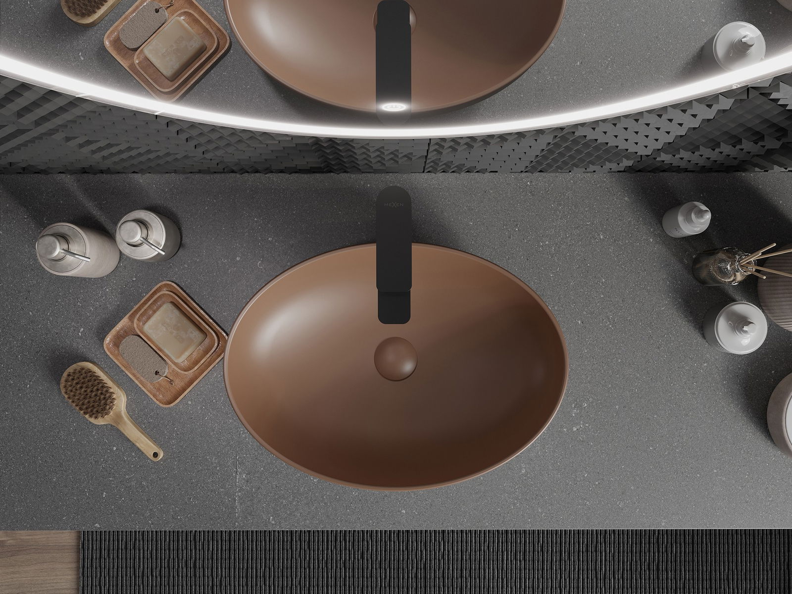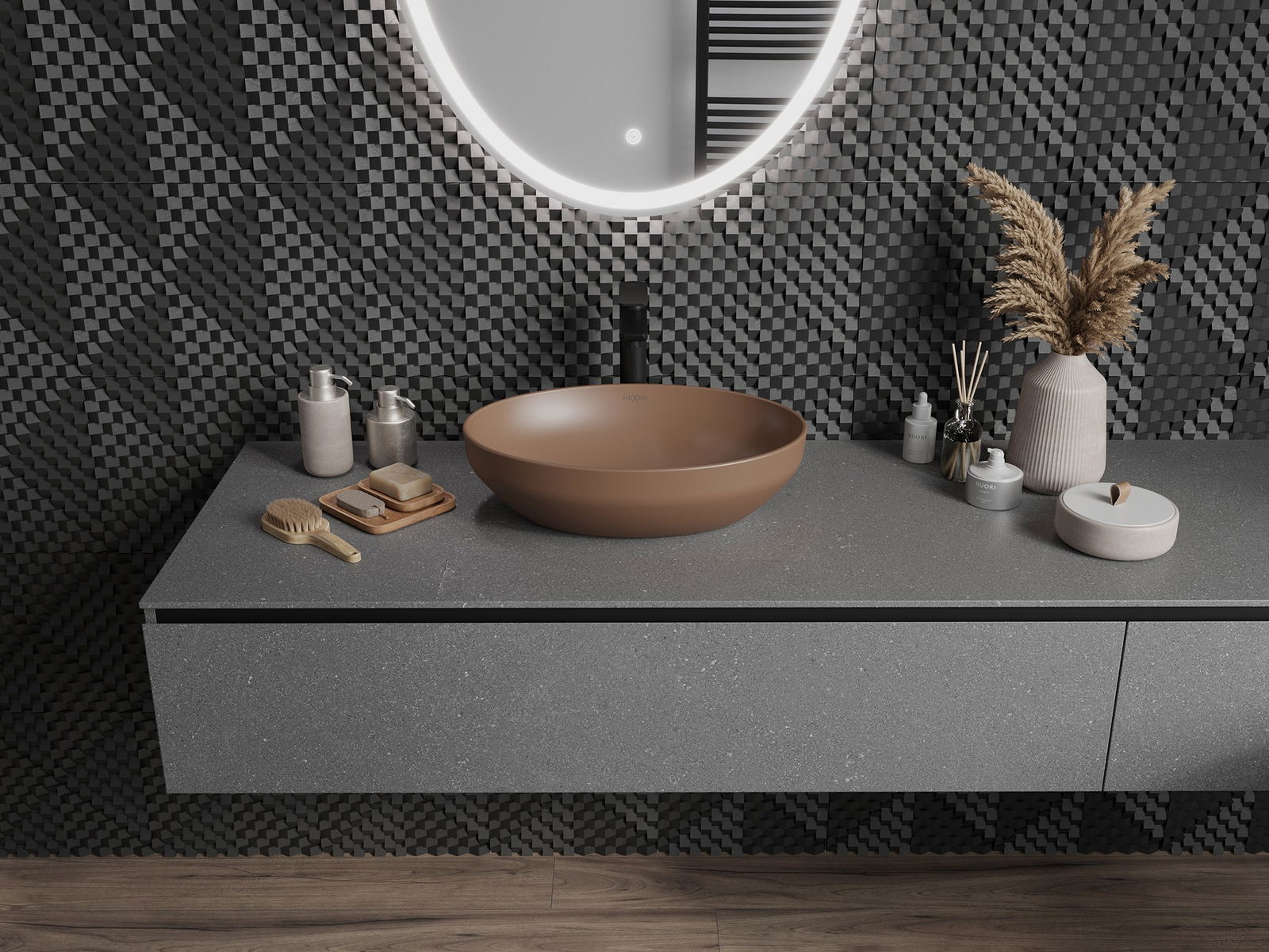 Matný povrch keramiky dokonale podtrhuje charakter barvy produktu, dodává mu jedinečnou a výraznou povrchovou úpravu. Jemná struktura matné keramiky přináší do koupelny eleganci, čímž vytváří estetický prostor.