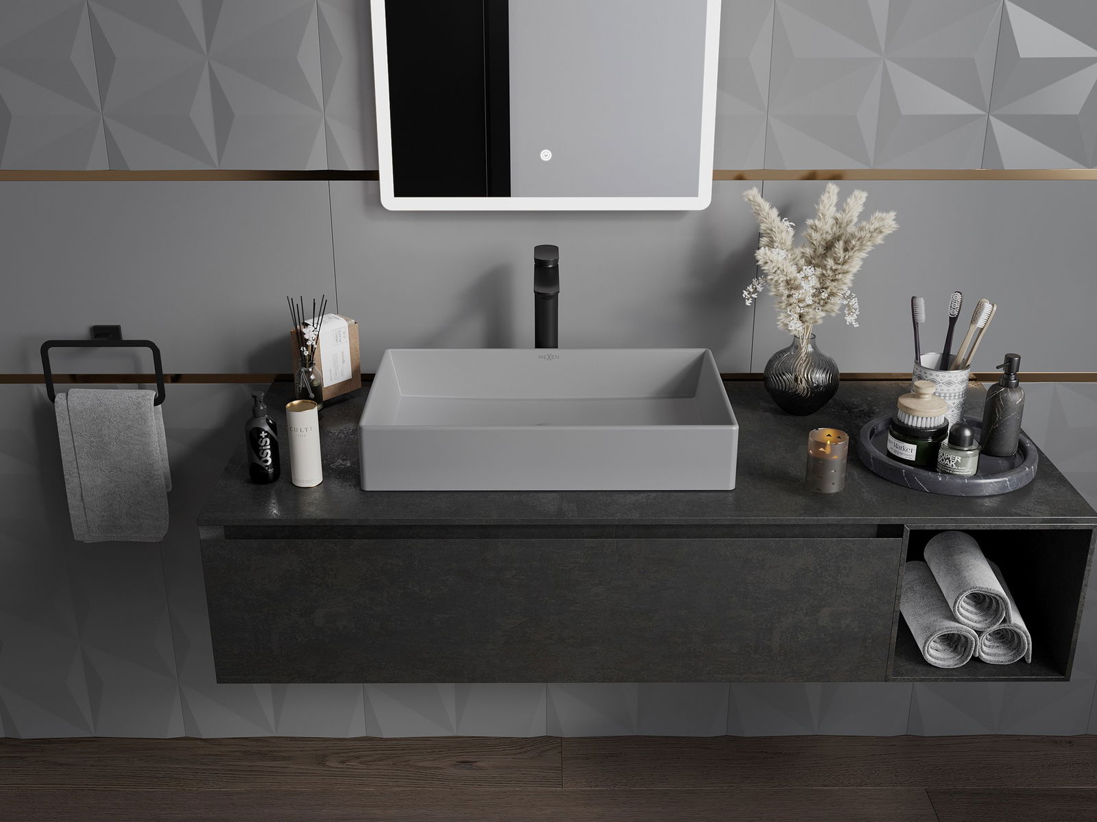 Matný povrch keramiky dokonale podtrhuje charakter barvy produktu, dodává mu jedinečnou a výraznou povrchovou úpravu. Jemná struktura matné keramiky přináší do koupelny eleganci, čímž vytváří estetický prostor.