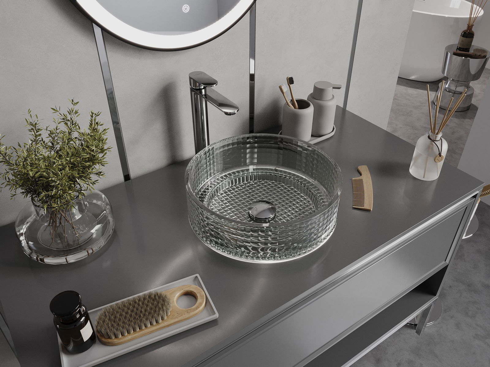 Umyvadlo se vyznačuje jedinečnou strukturou krystalků, která mu dodává jedinečný a velmi efektní vzhled. Krystalky se třpytí na světle, přitahují pozornost a dodávají elegantnost. Praktické a stylové řešení pro každou koupelnu.