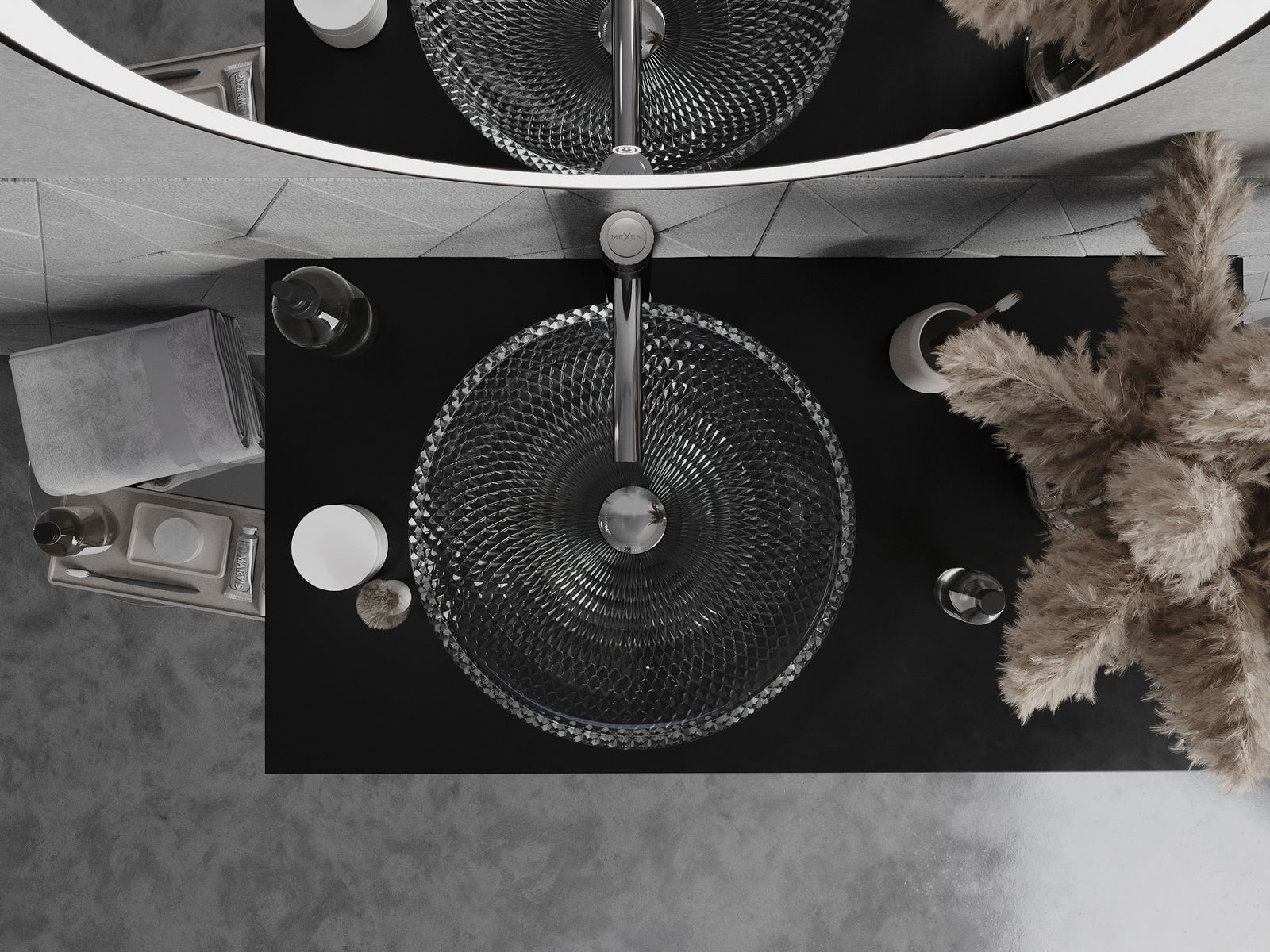 Umyvadlo se vyznačuje jedinečnou strukturou krystalků, která mu dodává jedinečný a velmi efektní vzhled. Krystalky se třpytí na světle, přitahují pozornost a dodávají elegantnost. Praktické a stylové řešení pro každou koupelnu.