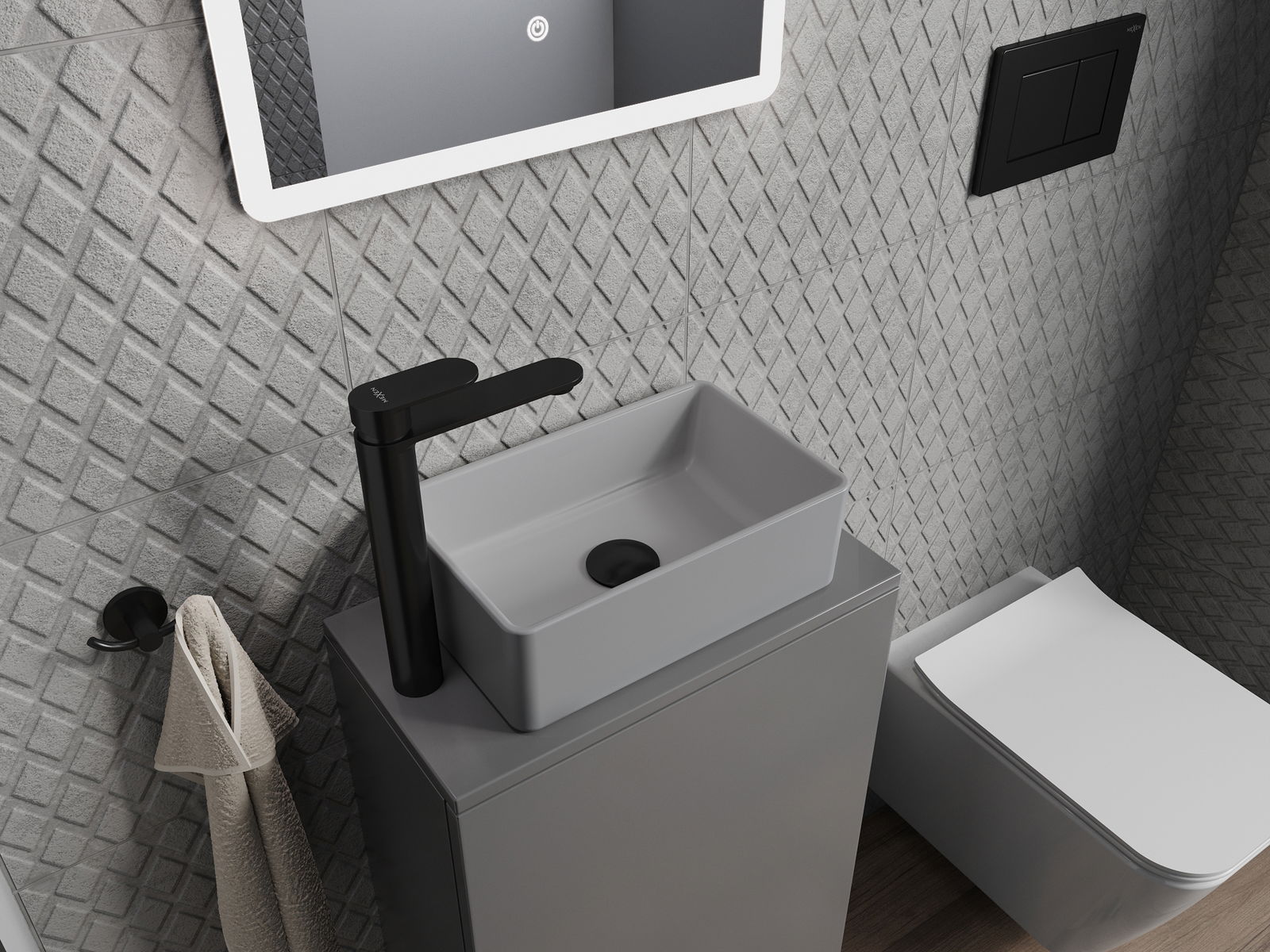 Matný povrch keramiky dokonale podtrhuje charakter barvy produktu, dodává mu jedinečnou a výraznou povrchovou úpravu. Jemná struktura matné keramiky přináší do koupelny eleganci, čímž vytváří estetický prostor.