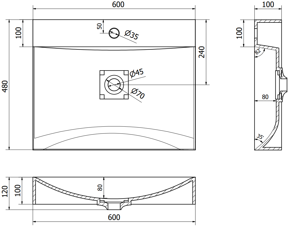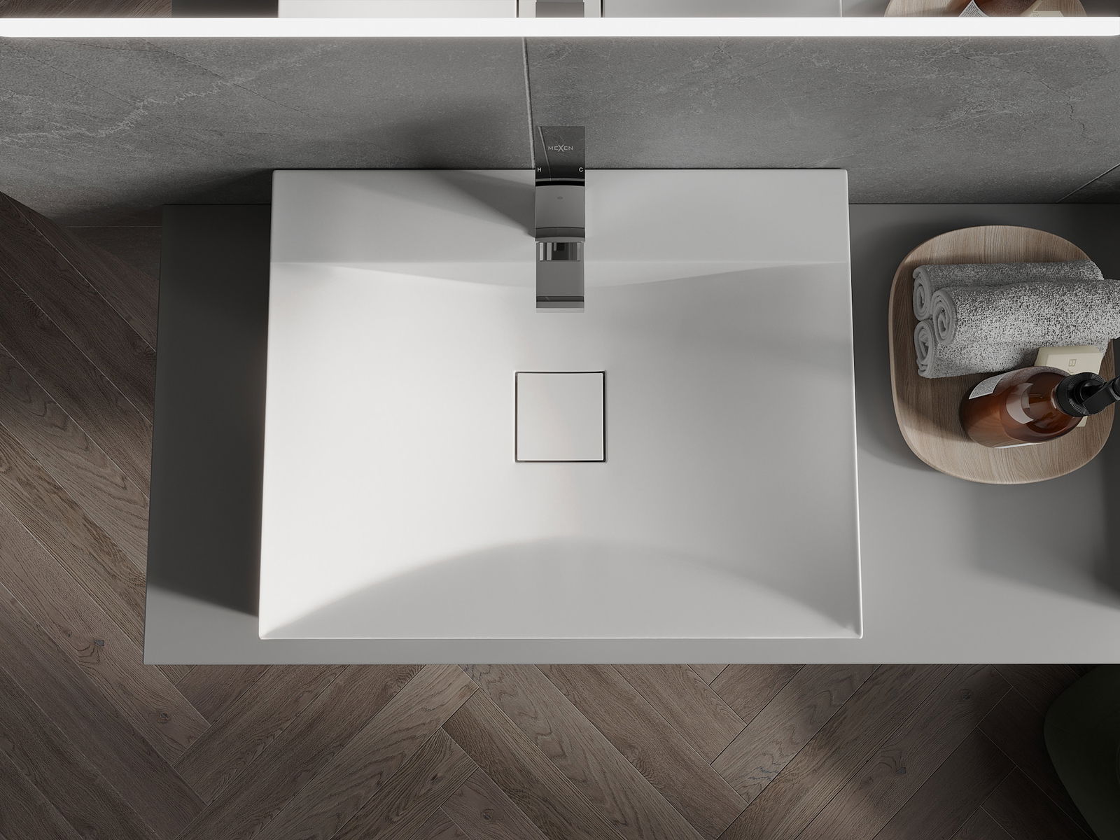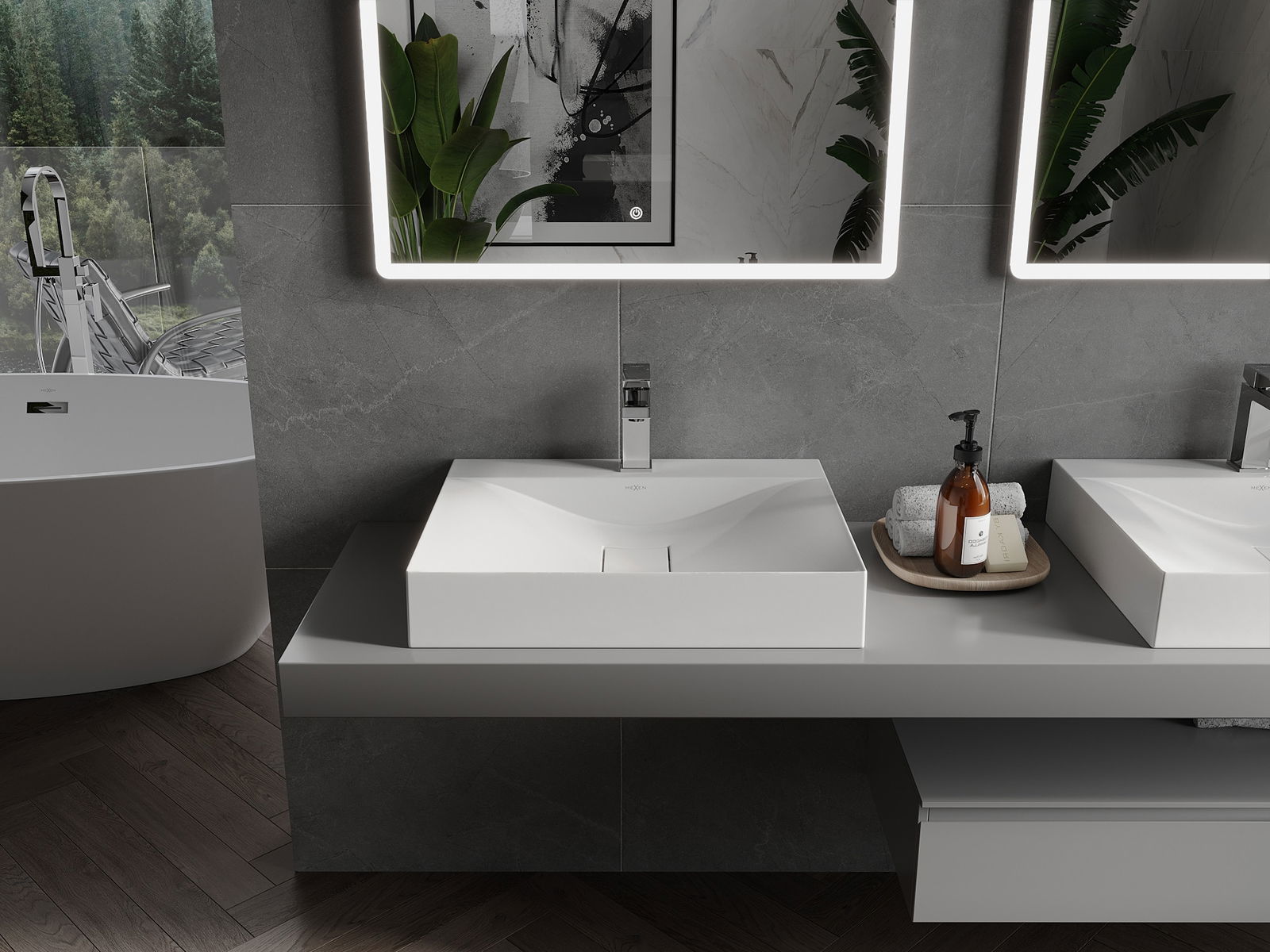 Umyvadlo má otvor, ve kterém lze namontovat baterii. Umožňuje to ušetřit cenný prostor v koupelně a zvýraznit její estetiku. Toto řešení také usnadňuje udržování čistoty kolem umyvadla.