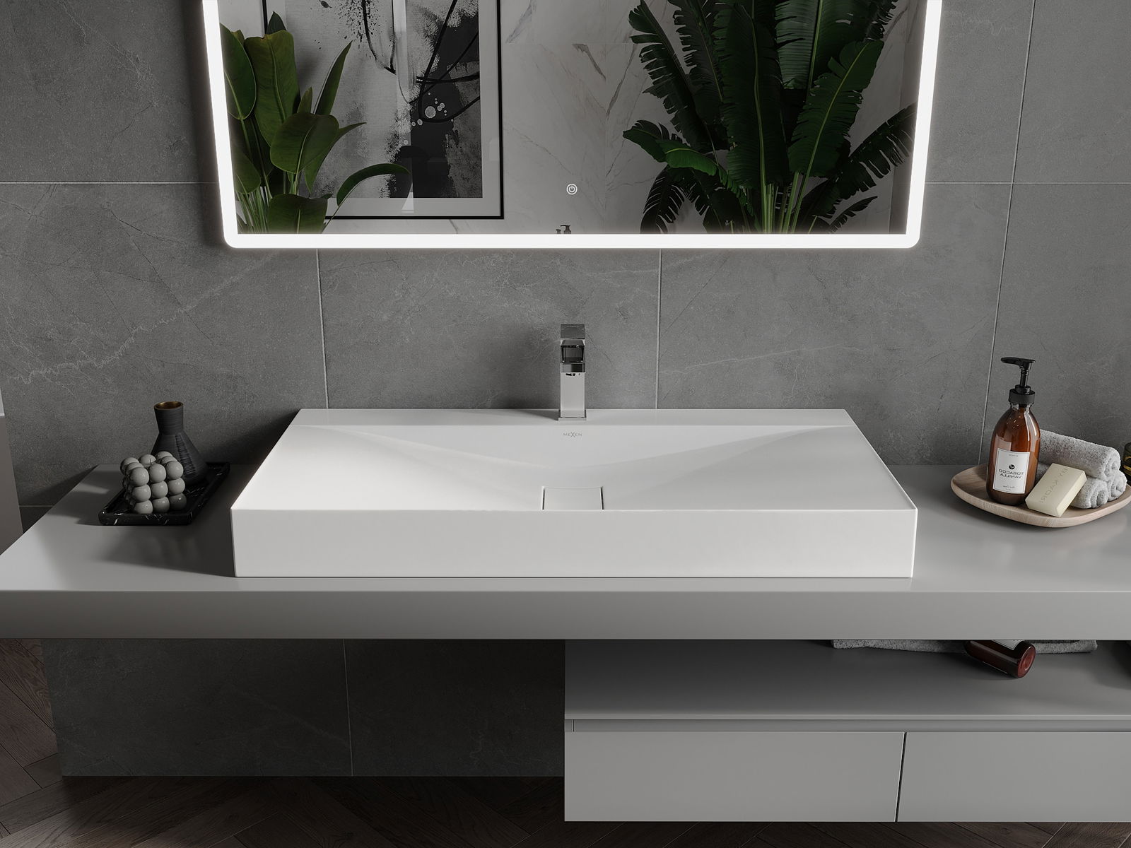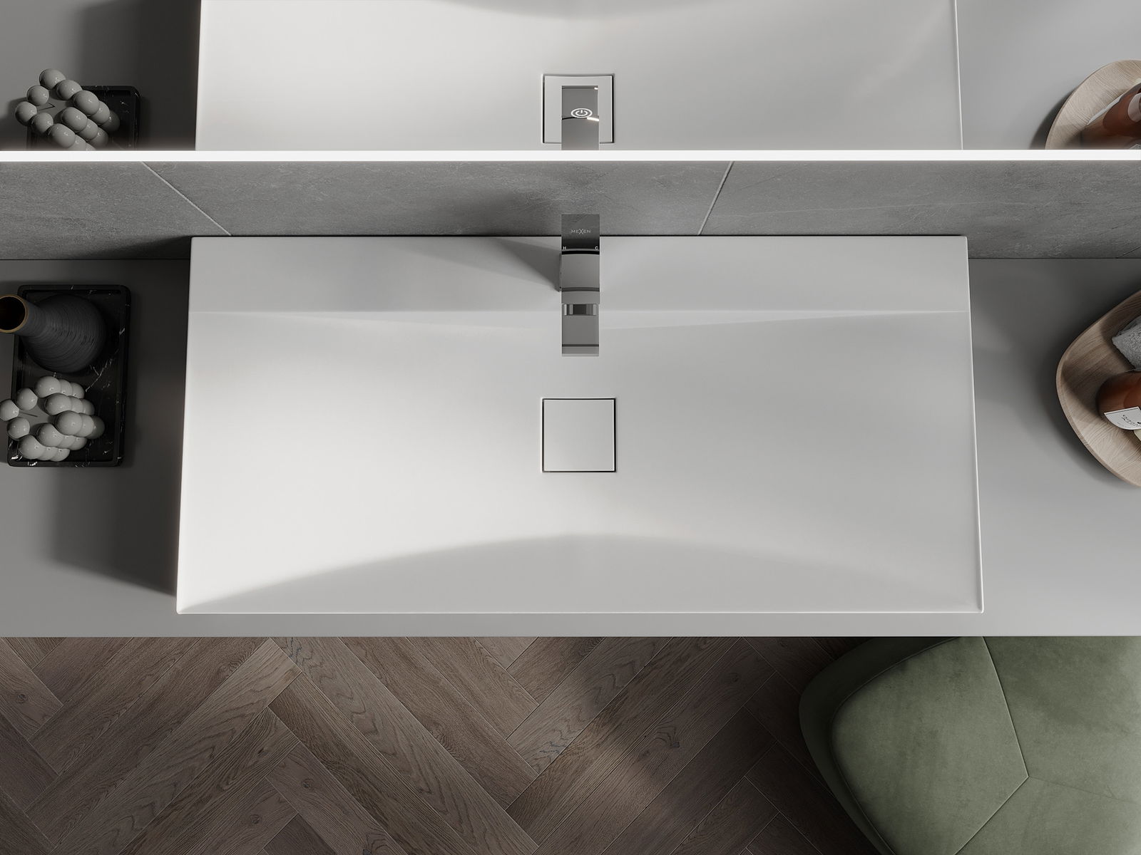 Umyvadlo má otvor, ve kterém lze namontovat baterii. Umožňuje to ušetřit cenný prostor v koupelně a zvýraznit její estetiku. Toto řešení také usnadňuje udržování čistoty kolem umyvadla.
