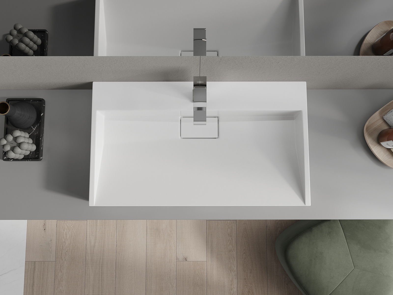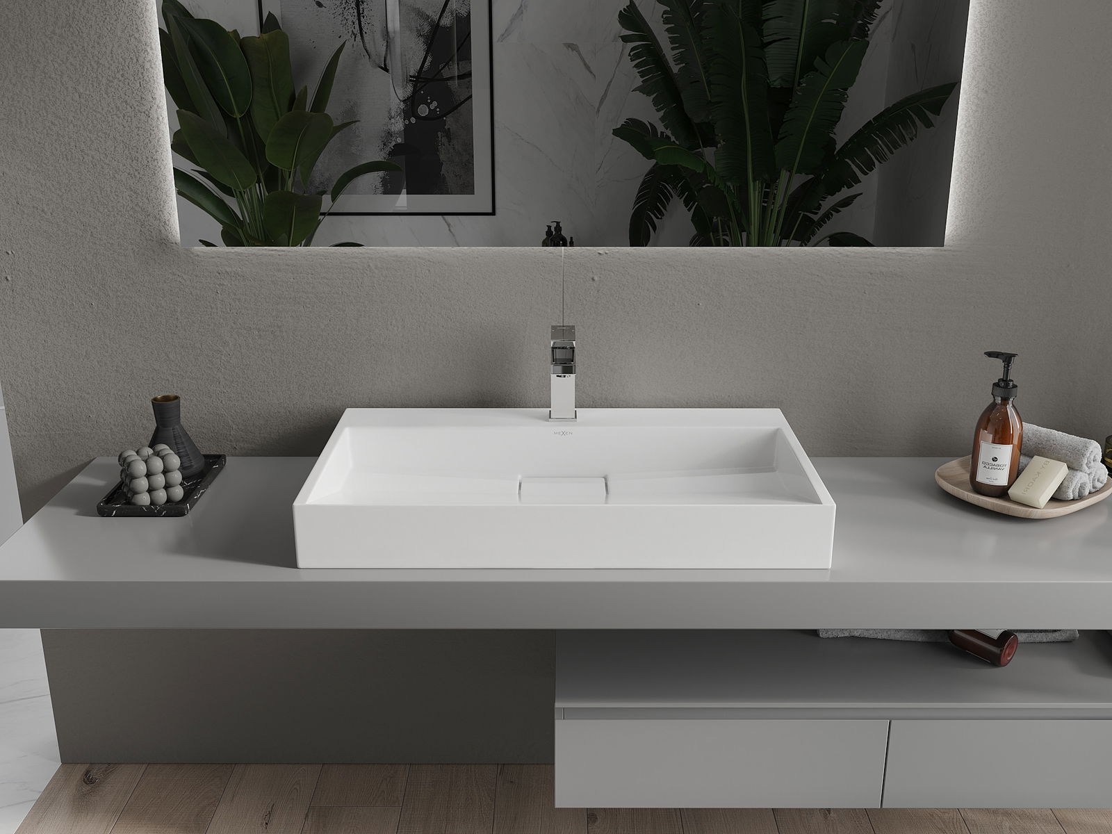 Umyvadlo má otvor, ve kterém lze namontovat baterii. Umožňuje to ušetřit cenný prostor v koupelně a zvýraznit její estetiku. Toto řešení také usnadňuje udržování čistoty kolem umyvadla.