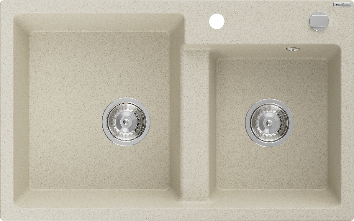 Mexen Tomas granitový dřez 2-komorový 800 x 500 mm, béžový, chromový sifon - 6516802000-69