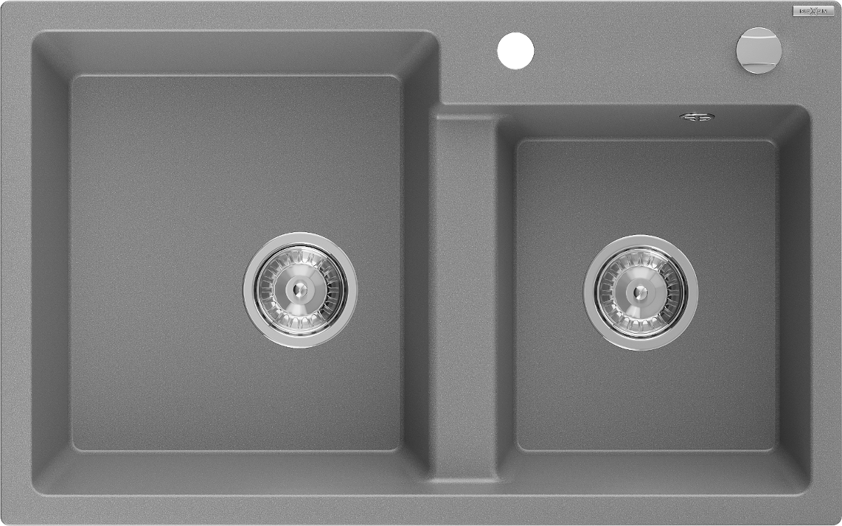 Mexen Tomas granitový dřez 2-komorový 800 x 500 mm, šedý, chromový sifon - 6516802000-71