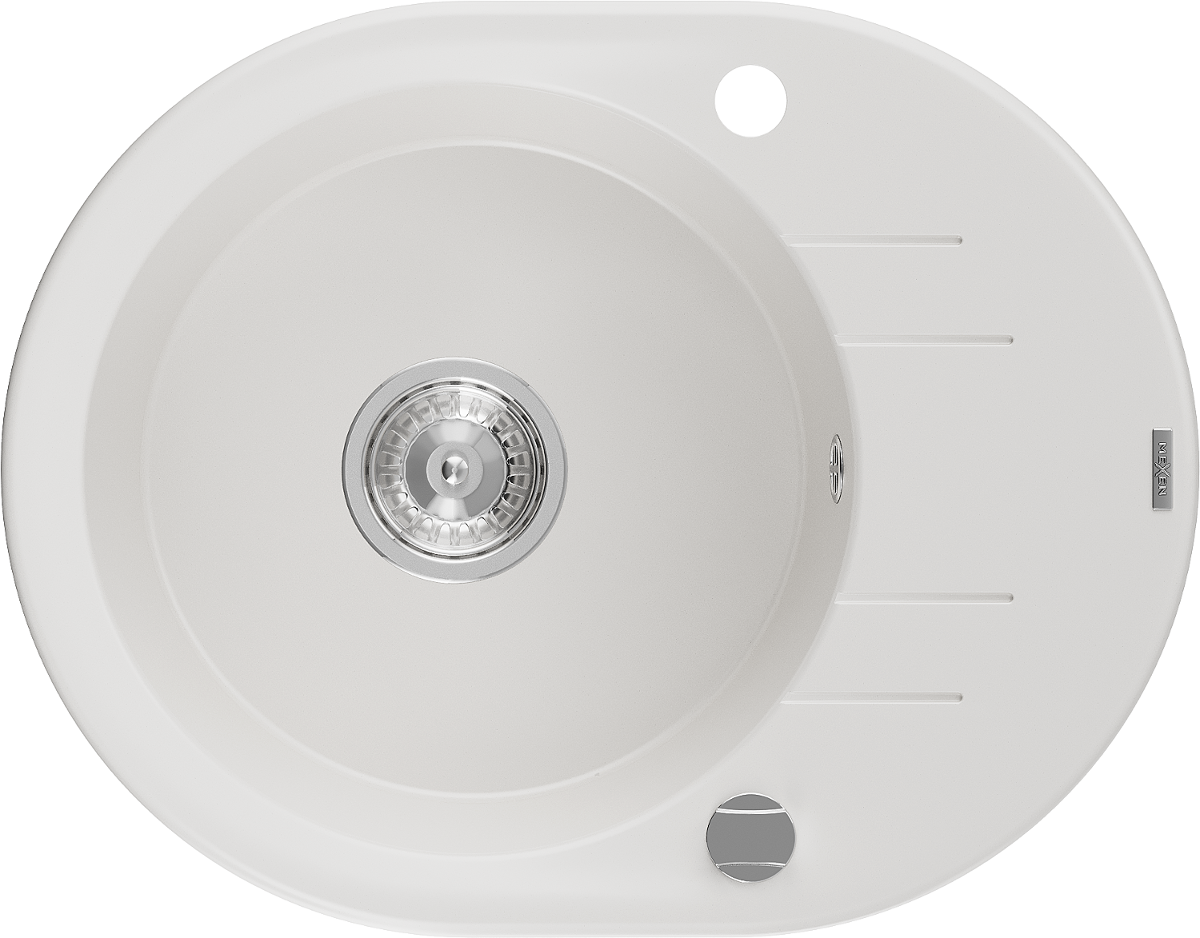 Mexen Kevin granitový dřez 1-komorový s odkapávačem 586 x 458 mm, bílý, sifon chrom - 6517581005-20