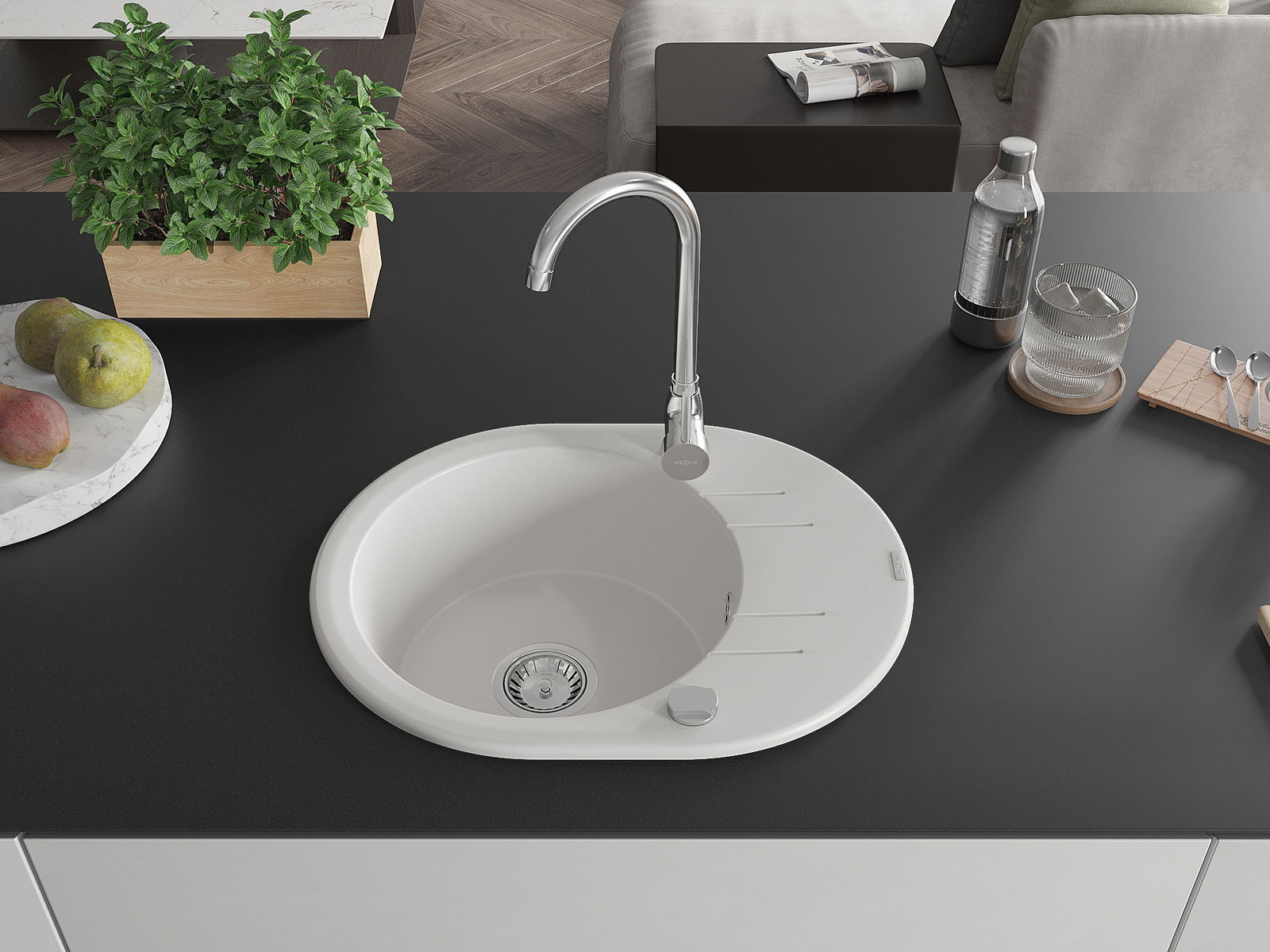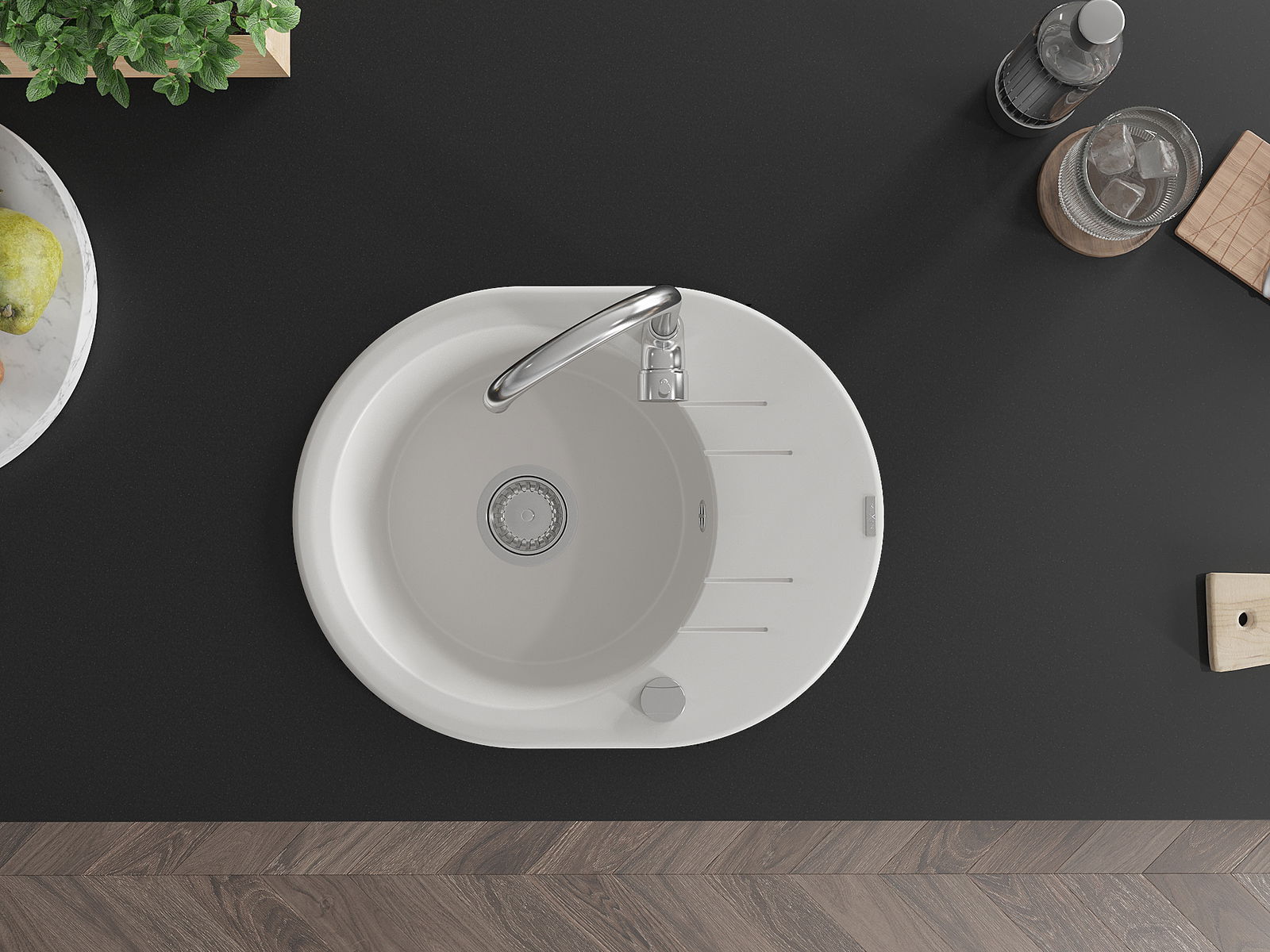 Povrch dřezu je odolný proti skvrnám a zabarvení, což usnadňuje jeho čištění a zachovává jeho barvu po dlouhou dobu používání. Estetický a praktický doplněk každé kuchyně.