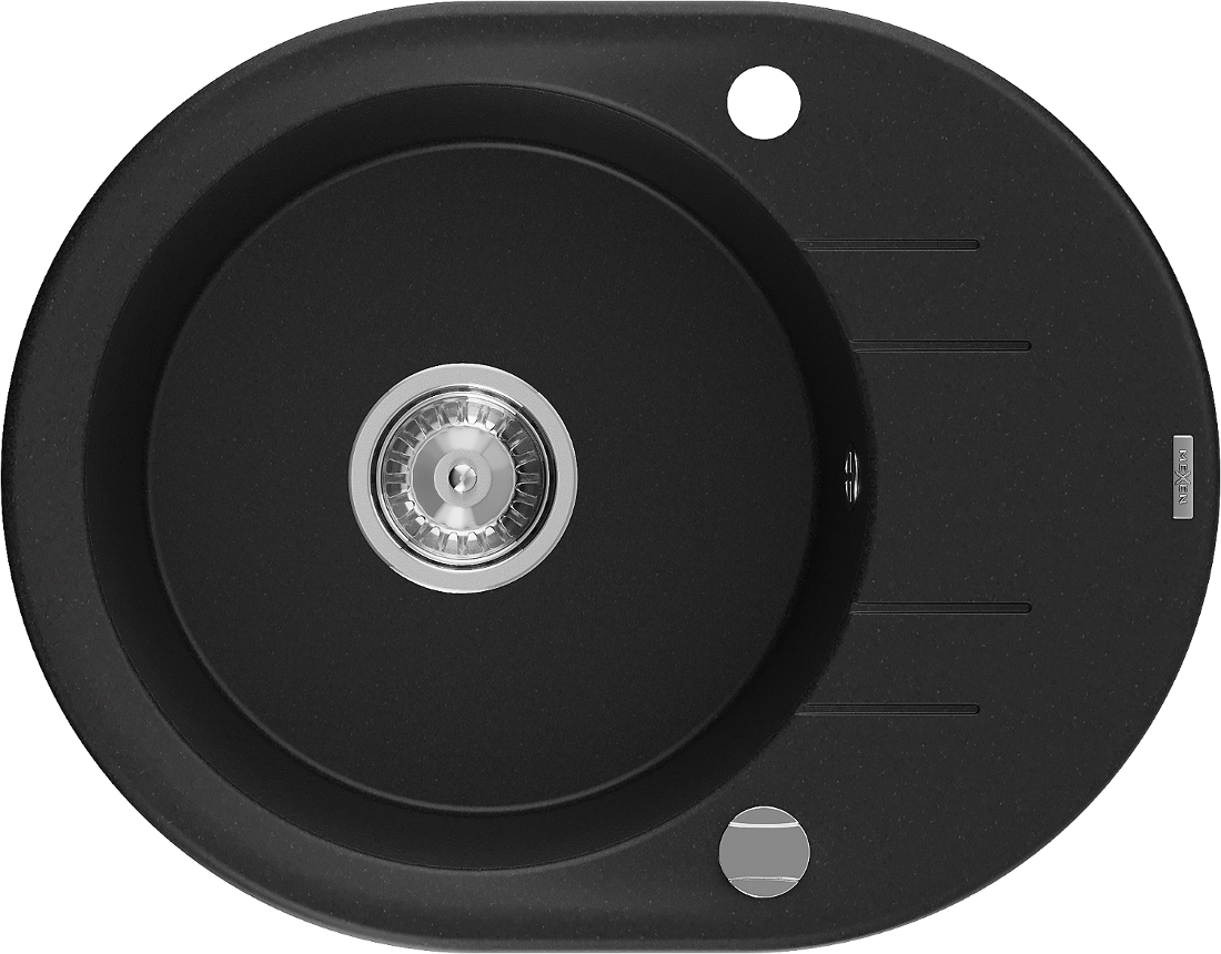 Mexen Kevin granitový dřez s jednou komorou a odkapávačem 586 x 458 mm, černý, sifon chrom - 6517581005-77