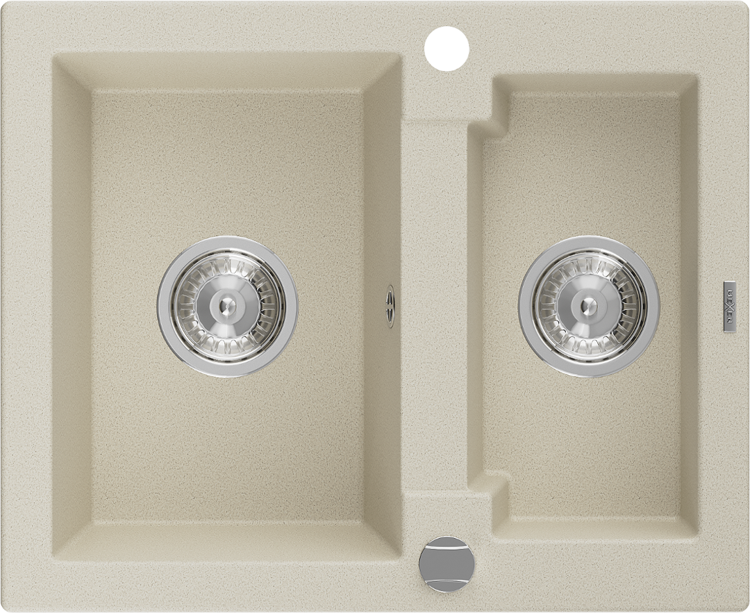 Mexen Carlos žulový dřez 1,5-komorový 582 x 475 mm, béžový, sifon chrom - 6518581500-69