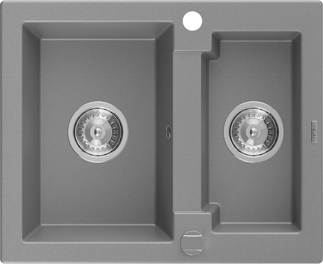 Mexen Carlos žulový dřez 1,5-komorový 582 x 475 mm, šedý, sifon chrom - 6518581500-71