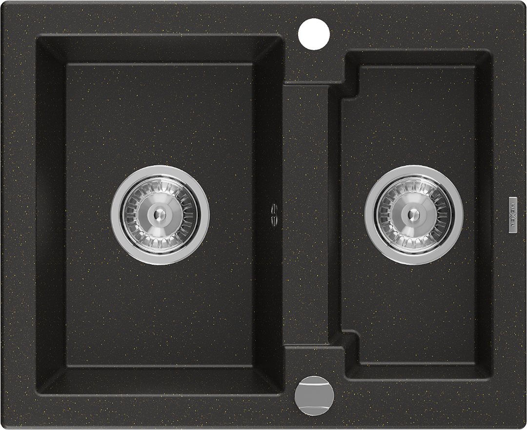 Mexen Carlos granitový dřez 1,5-komorový 582 x 475 mm, černý/zlatý metalik, sifon chrom - 6518581500-75