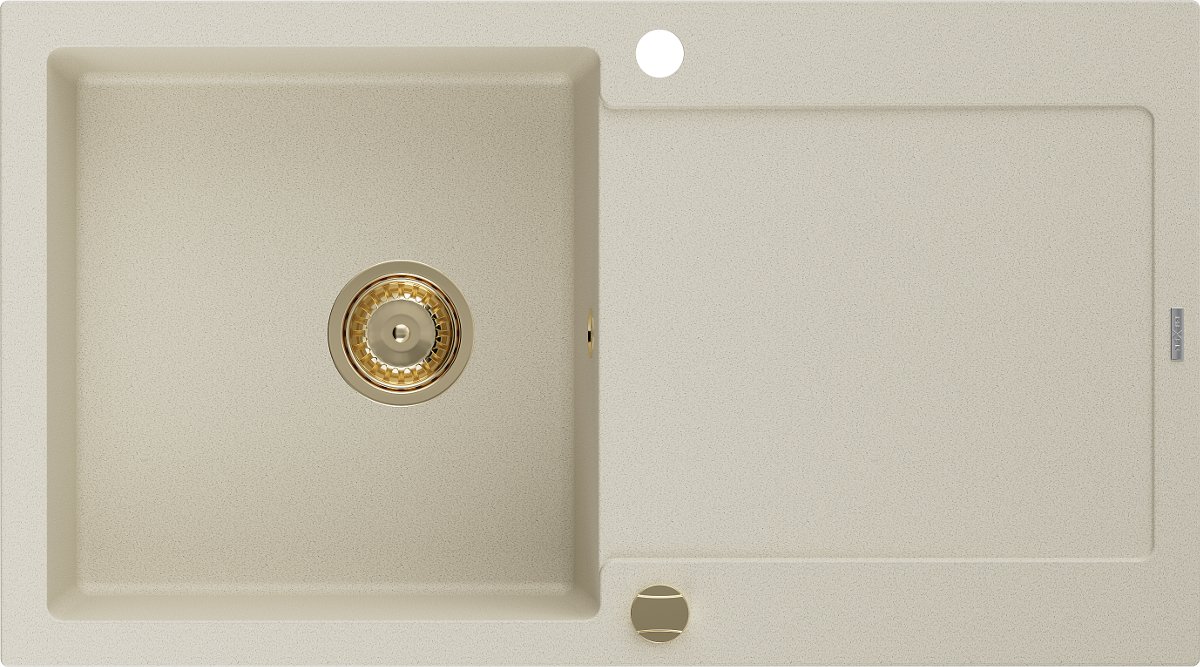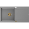 Mexen Leo granitový dřez 1-komorový s odkapávačem 900 x 500 mm, béžový, sifon zlatý - 6501901010-69-G
