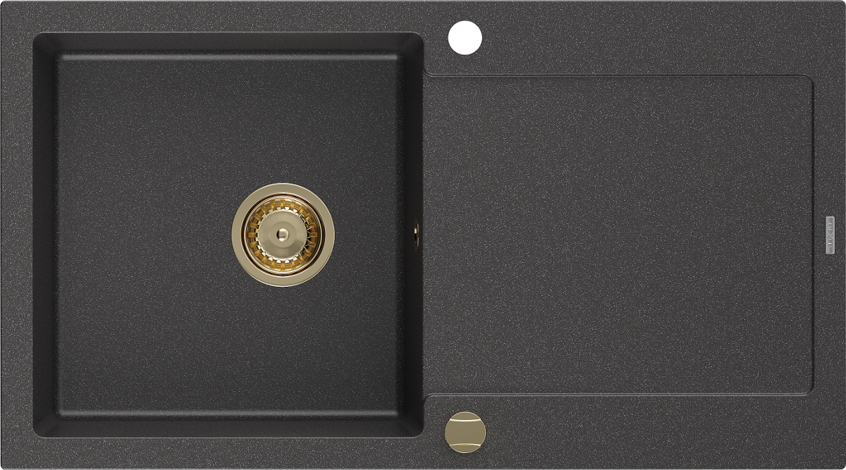 Mexen Leo granitový dřez 1-komorový s odkapávačem 900 x 500 mm, černý kropenatý, zlatý sifon - 6501901010-76-G