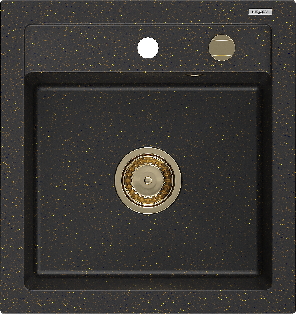 Mexen Vito dřez granitový 1-komorový 520 x 490 mm, černý/zlatý metalik, sifon zlatý - 6503521000-75-G