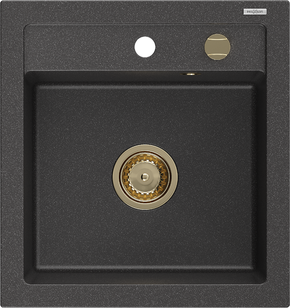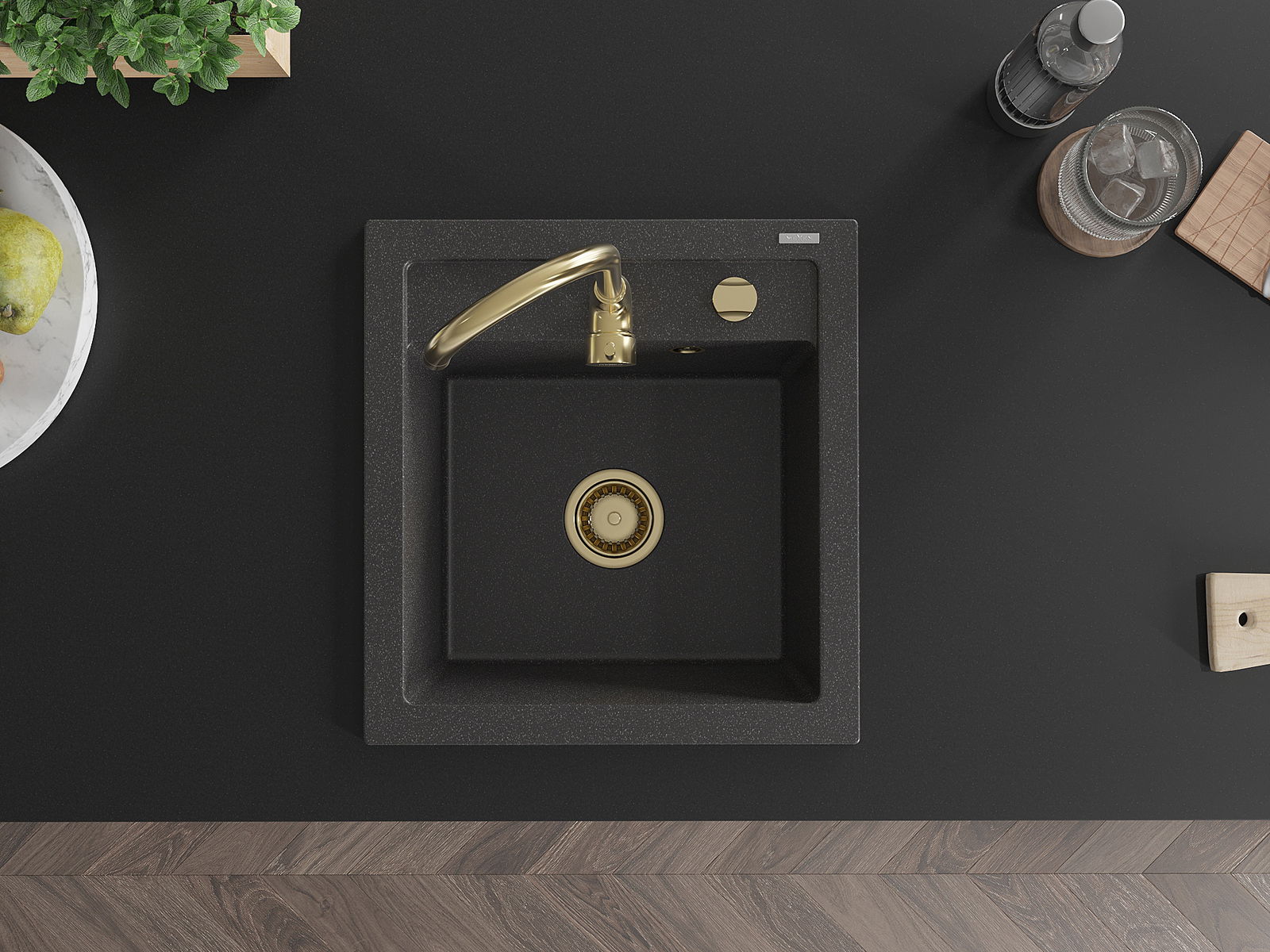 Mexen Vito granitový dřez 1-komorový 520 x 490 mm, černý stříkaný, sifon zlatý - 6503521000-76-G