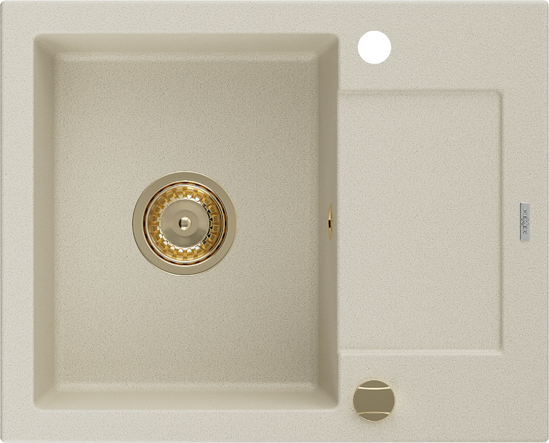 Mexen Enzo granitový dřez 1-komorový s odkapávačem 576 x 465 mm, béžový, sifon zlatý - 6506571005-69-G