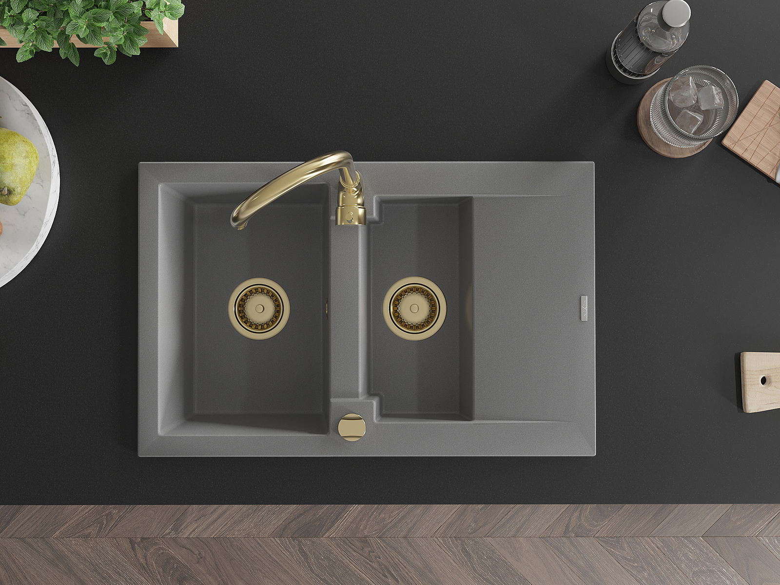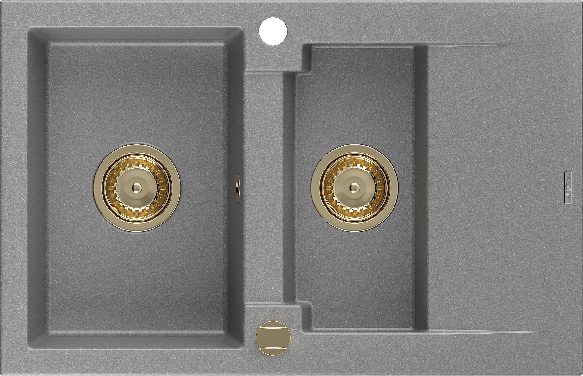Mexen Gaspar granitový dřez 1,5-komorový s odkapávačem 737 x 475 mm, šedý, sifon zlatý - 6507731505-71-G