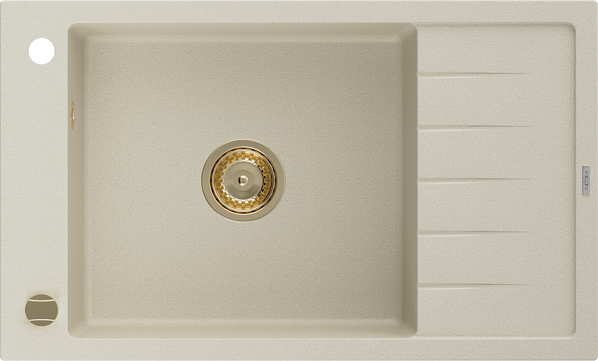 Mexen Elias žulový dřez s jednou komorou s odkapávačem 795 x 480 mm, béžový, zlatý sifon - 6511791005-69-G