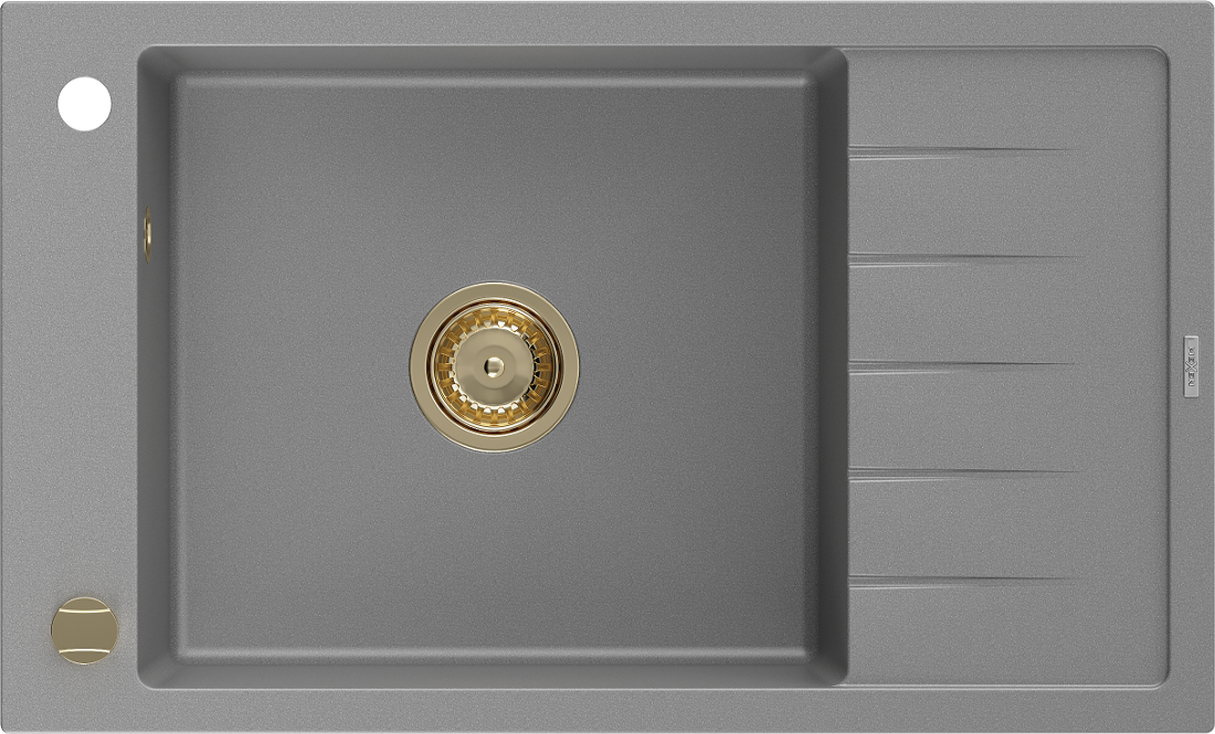 Mexen Elias žulový dřez s jednou komorou a odkapávačem 795 x 480 mm, šedý, zlatý sifon - 6511791005-71-G