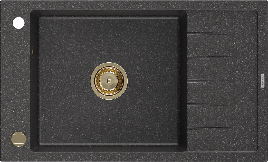 Mexen Elias granitový dřez 1-komorový s odkapávačem 795 x 480 mm, černý skvrnitý, zlatý sifon - 6511791005-76-G