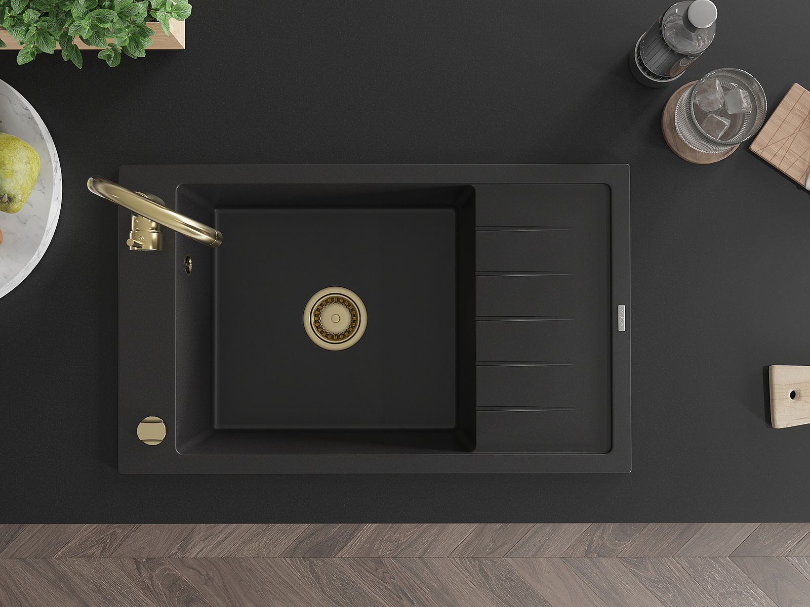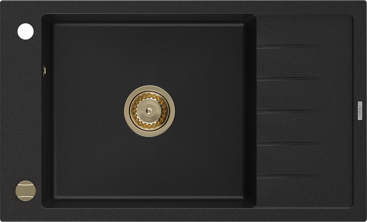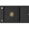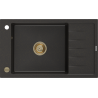 Mexen Elias granitový dřez s odkapávačem 1-komorový 795 x 480 mm, černý, sifon zlatý - 6511791005-77-G