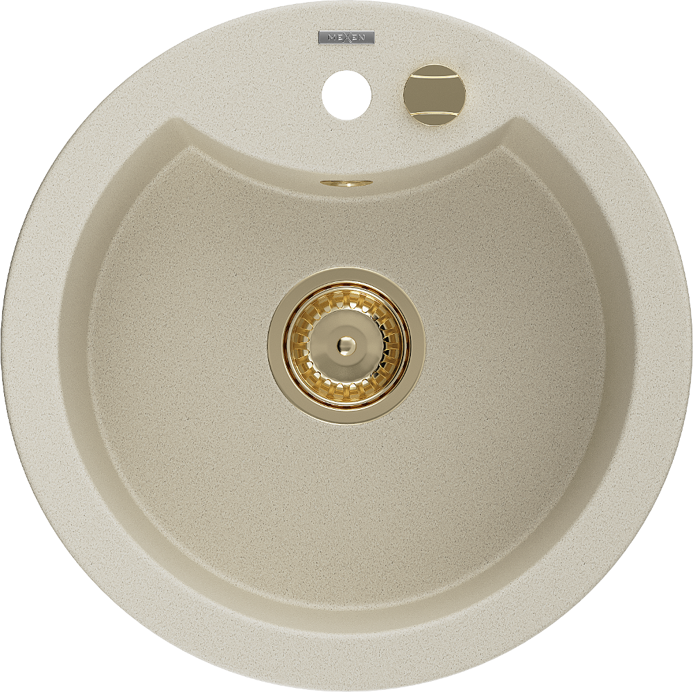 Mexen Diego granitový jednodřez 488 x 480 mm, béžový, sifon zlatý - 6512481000-69-G