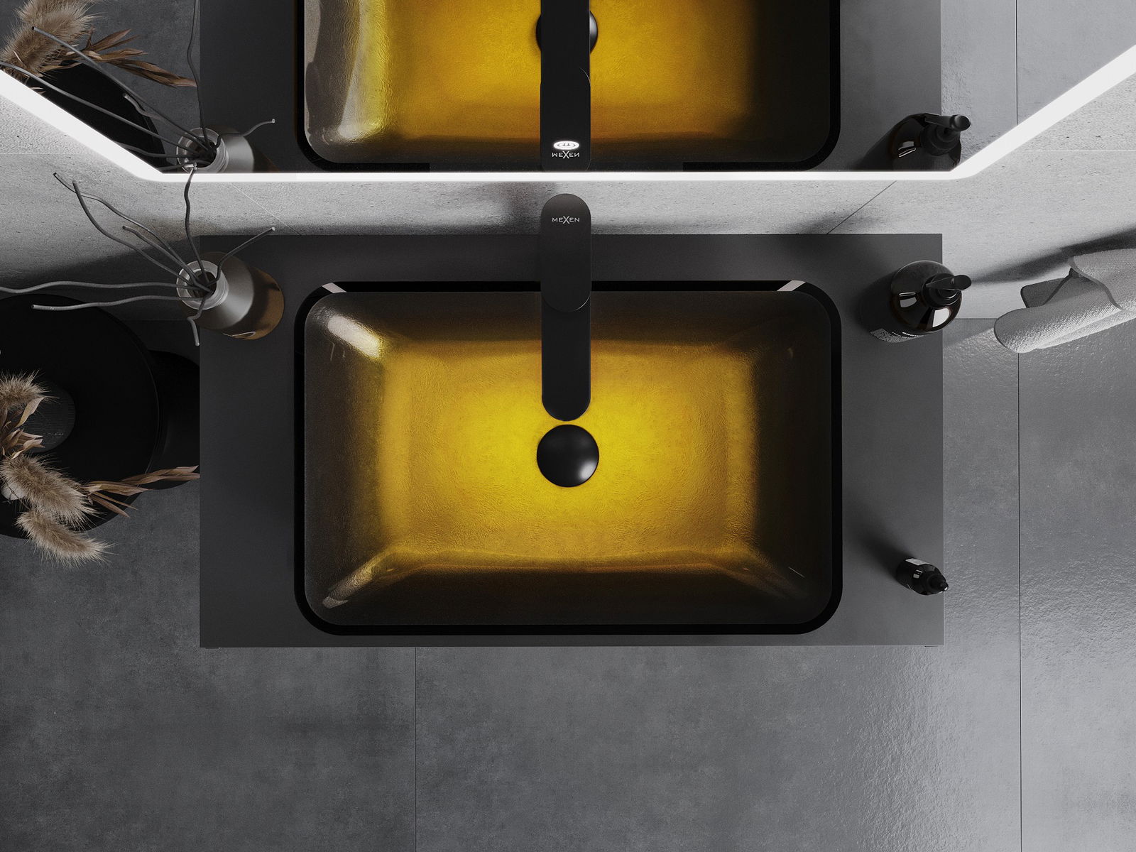 Mexen Megan skleněné umyvadlo na desku 56 x 36 cm, tmavě zlaté - 24135651