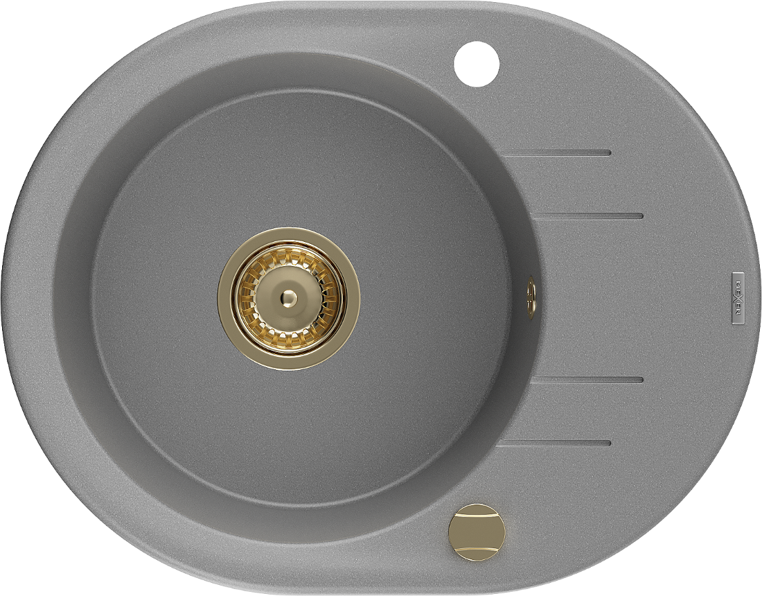 Mexen Kevin granitový dřez 1-komorový s odkapávačem 586 x 458 mm, šedý, zlatý sifon - 6517581005-71-G