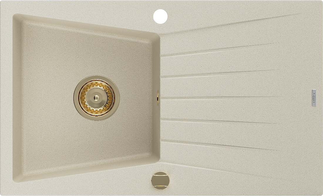 Mexen Cesar žulový dřez 1-komorový s odkapávačem 775 x 470 mm, béžový, zlatý sifon - 6514771010-69-G